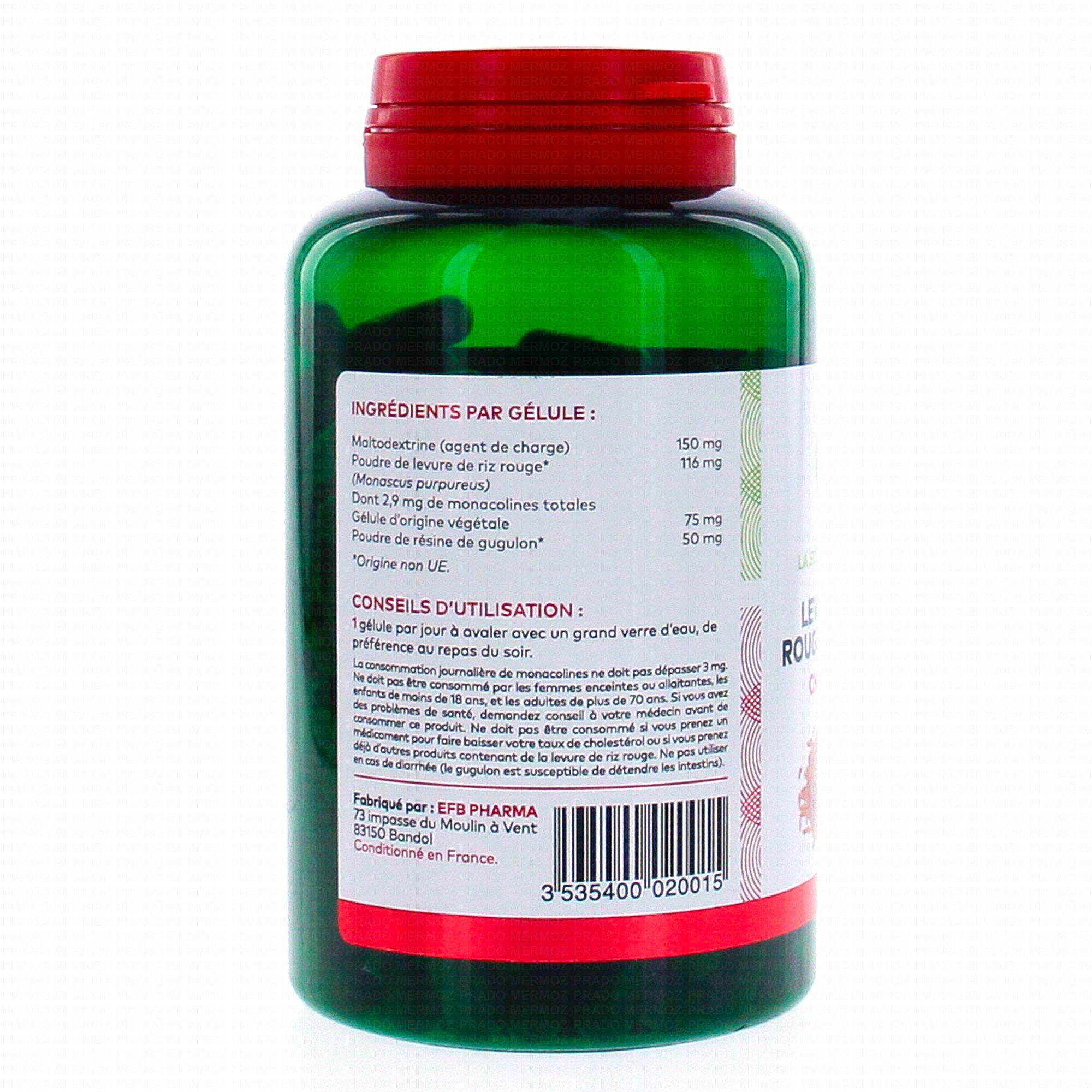 PHARMASCIENCE Cholestérol- Levure de riz rouge & Gugulon 120 gélules contient les éléments suivants :