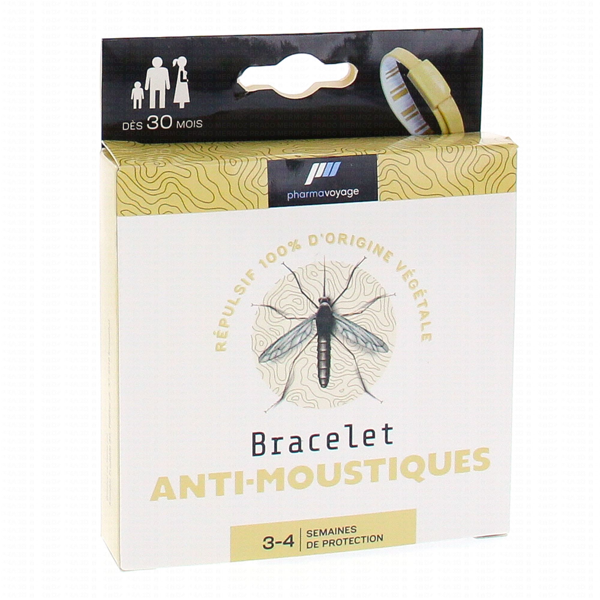 En stockCe bracelet imprégné de répulsif repousse efficacement et immédiatement les moustiques. De plus il offre une protection efficace pendant 3 à 4 semaines ( à raison de 3 à 4h/jour). Ce bracelet est réglable et donc utilisable par tous les membres de la famille (adultes et enfants dès 30 mois). Résiste à l'eau. Biodégradable.