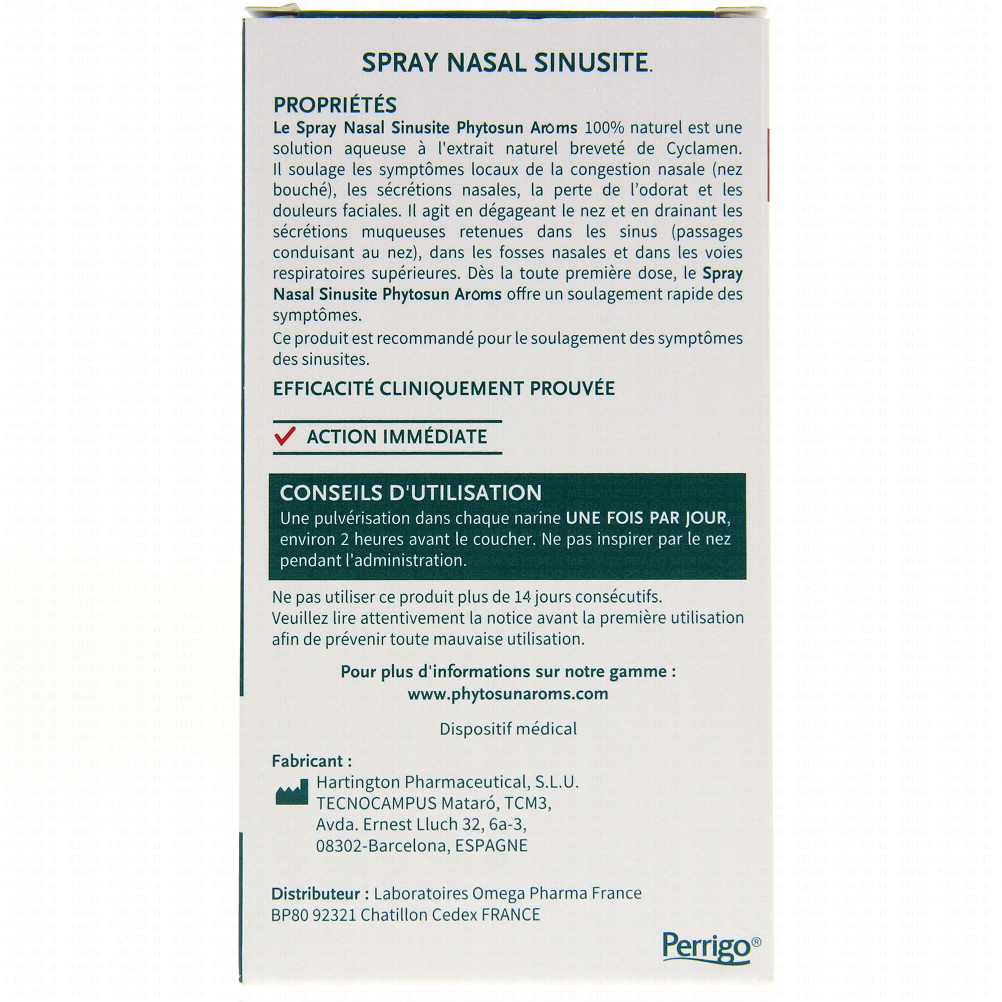 Phytosun arôms spray nasal sinusite est formulé sans antibiotiques ni corticoïdes. Il ne contient ni additifs ni conservateurs, son efficacité est cliniquement prouvée.