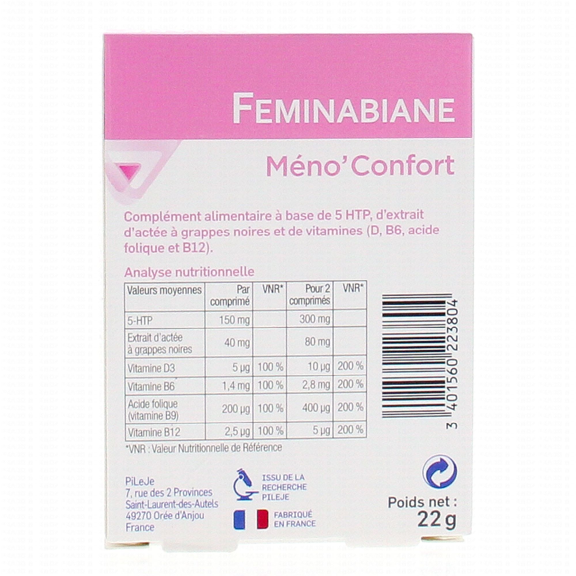 PILEJE Feminabiane Méno'Confort 30 comprimés contient les éléments suivants :