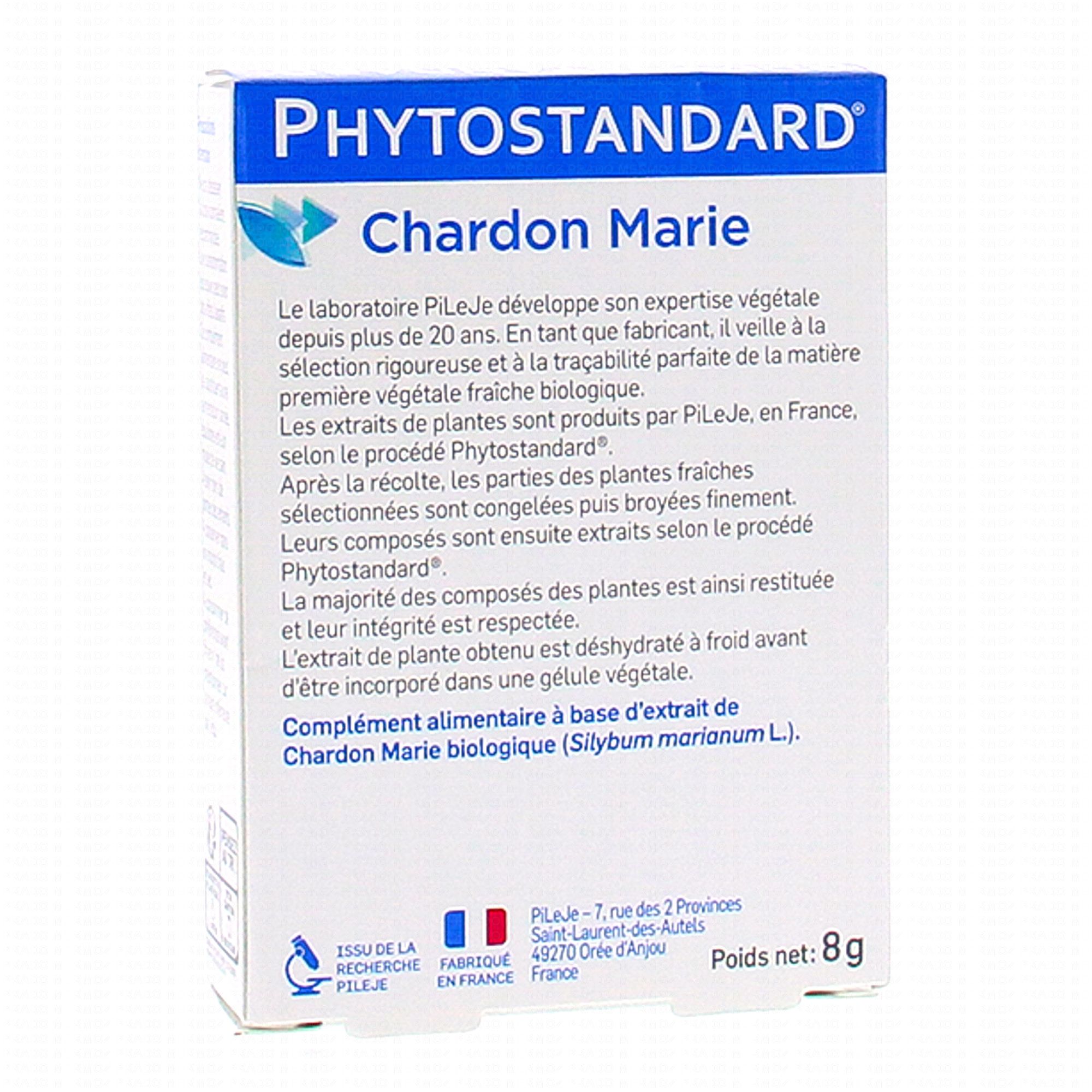 PILEJE Pytostandard chardon marie 20 gelules végétale contient les éléments suivants :