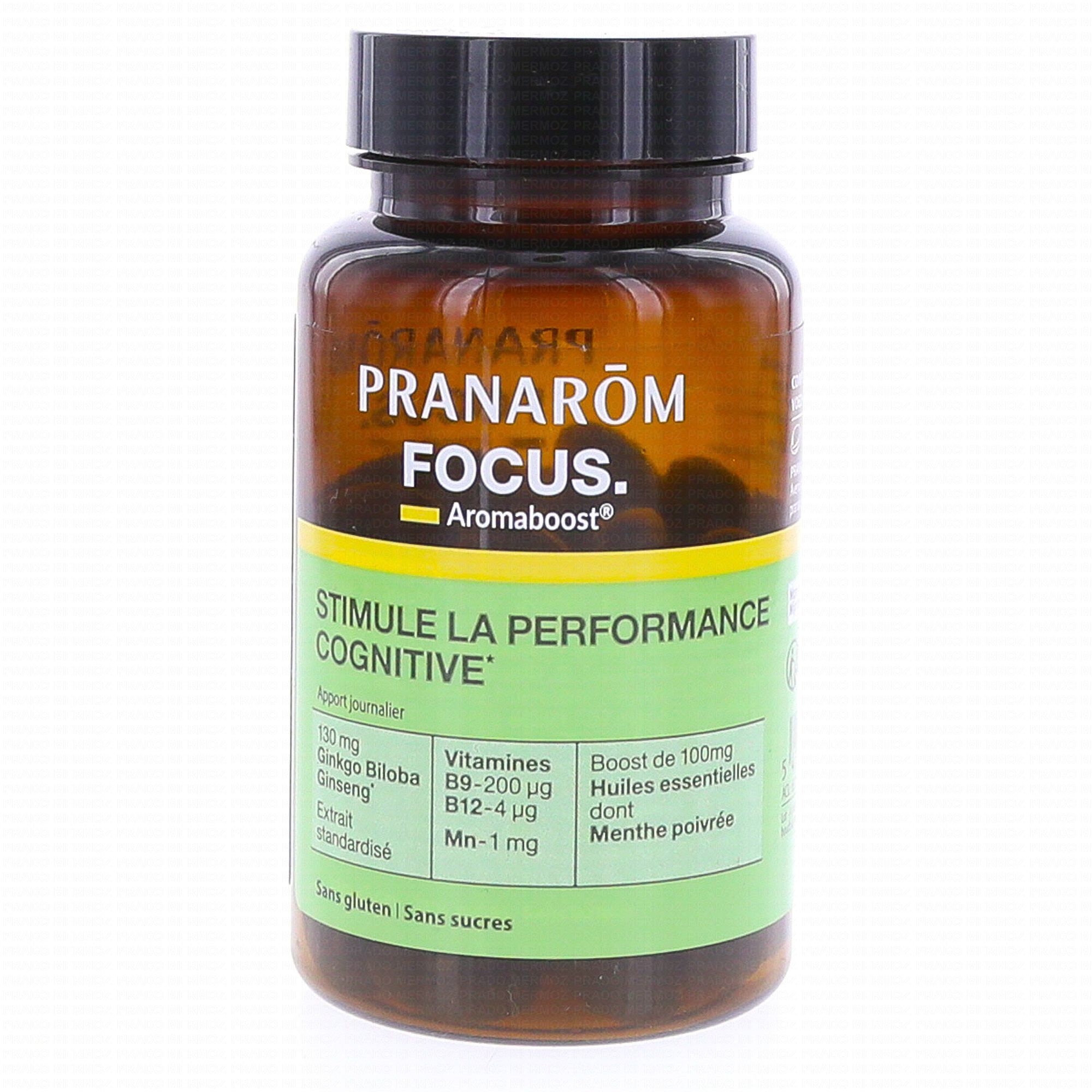 PRANAROM Aromaboost - Focus x60 Capsules contient les éléments suivants :