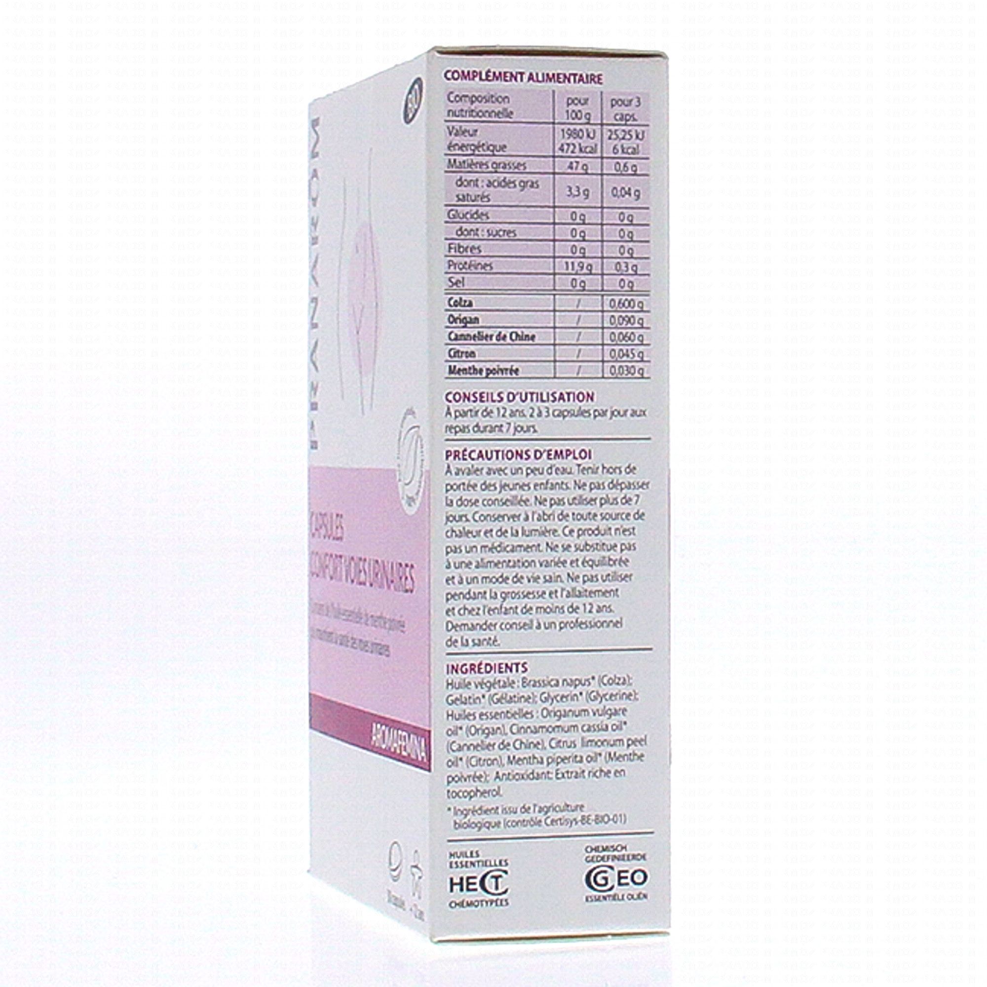 PRANAROM Aromafemina - Capsules confort voies urinaires bio x30 capsules contient les éléments suivants :