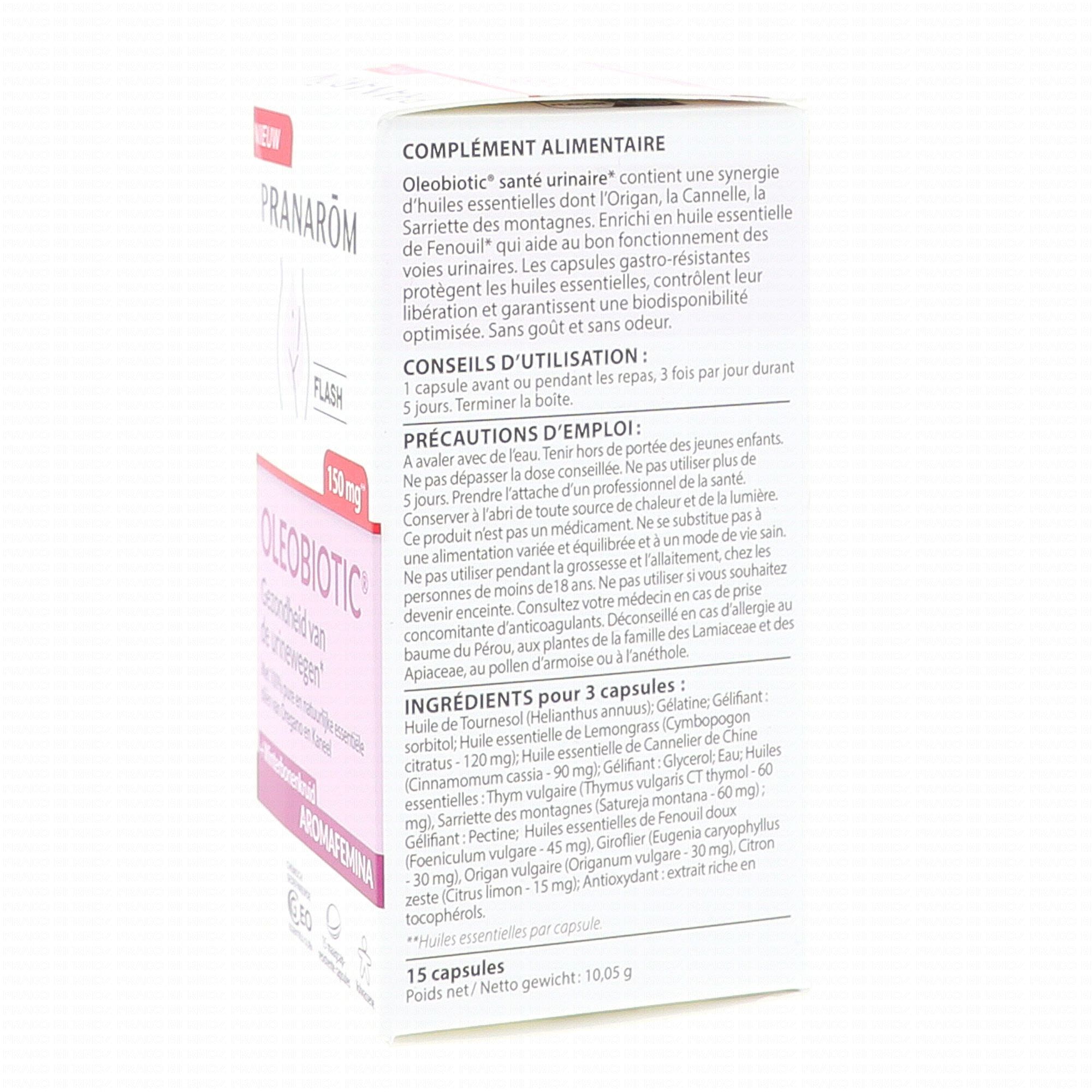 PRANAROM Aromafemina - Oleobotic Flash 150mg - Santé urinaire contient les éléments suivants :