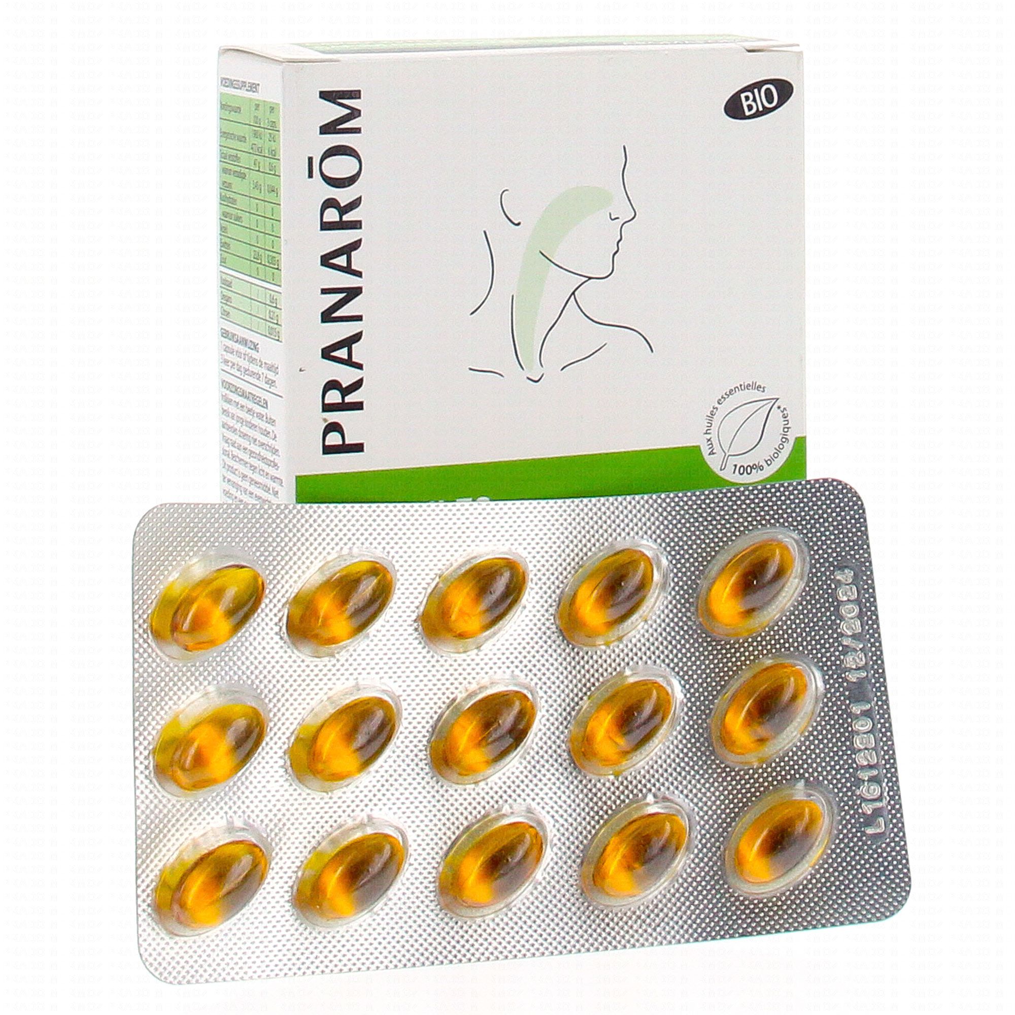 PRANAROM Capsules nez gorge bio 30 capsules contient les éléments suivants :