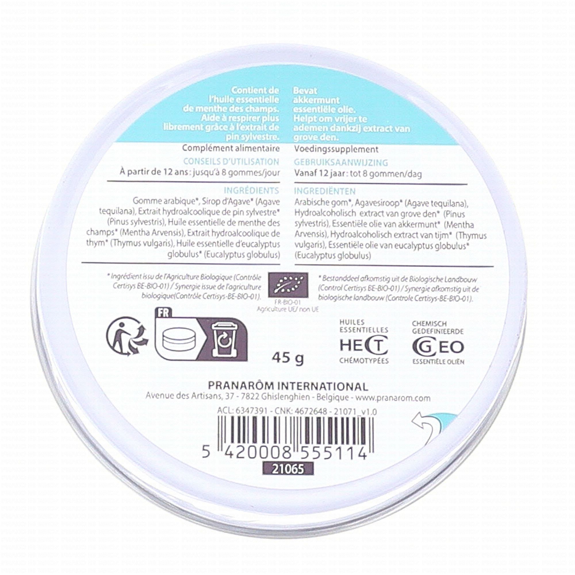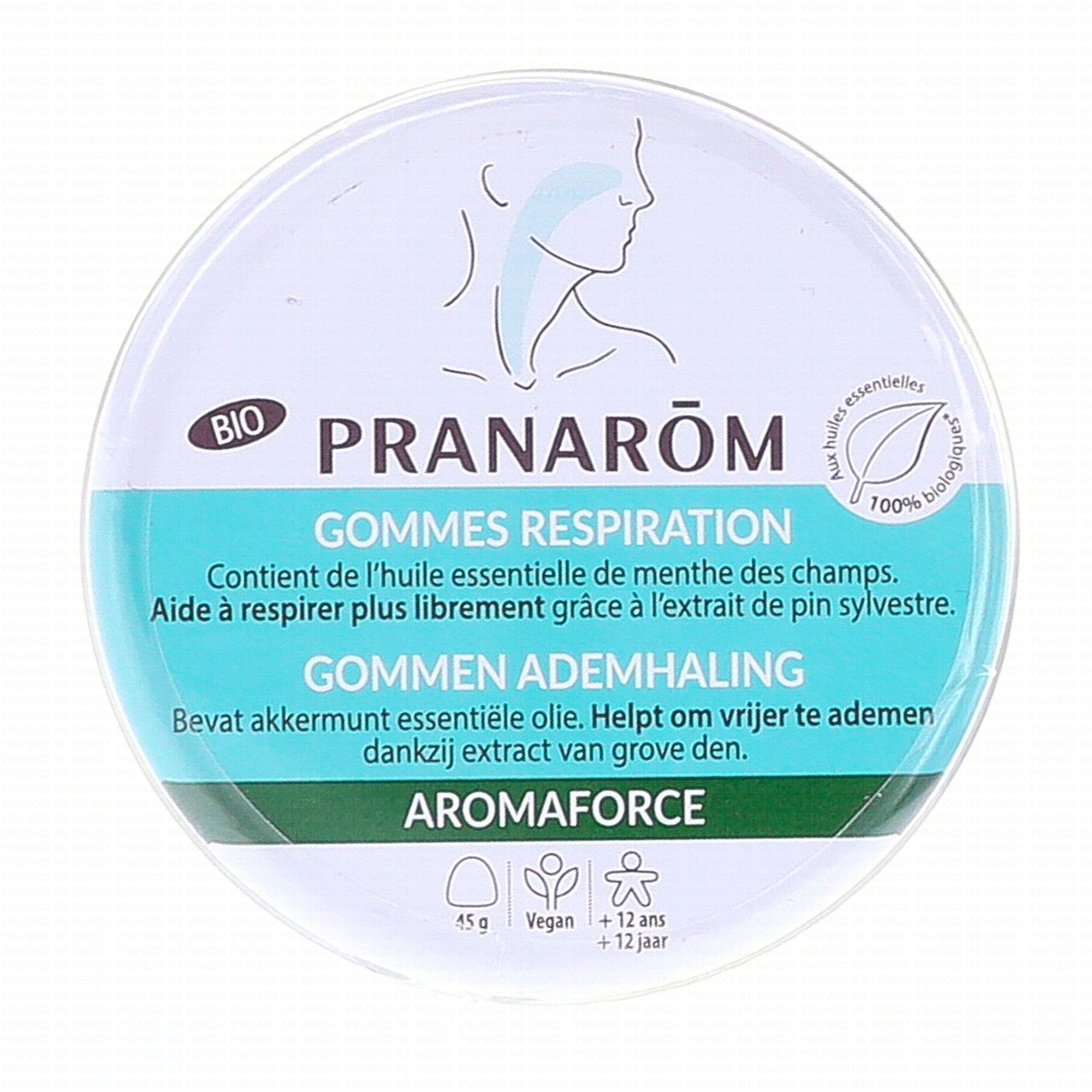 PRANAROM Aromaforce - Gommes Respiration bio 45g contient les éléments suivants :