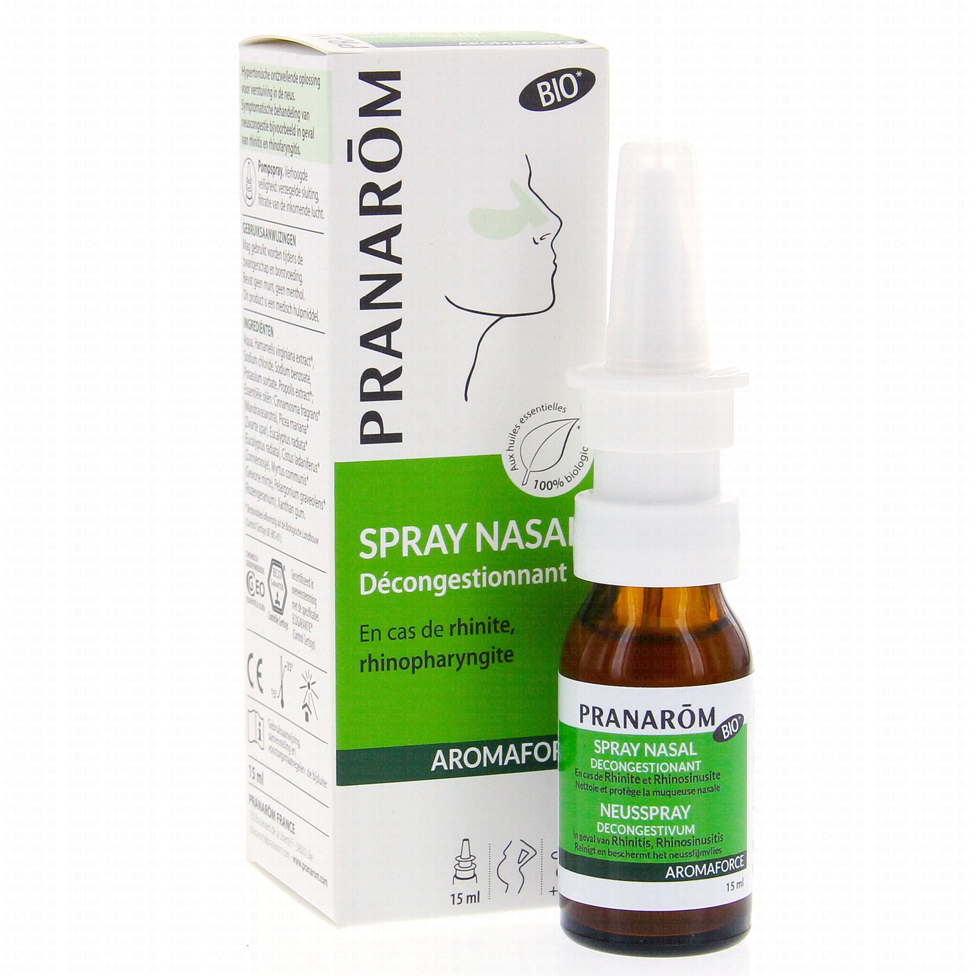 Solution hypertonique décongestionnante pour pulvérisation nasale. Le spray nasal Aromaforce est une solution hypertonique associée à des huiles essentielles 100% biologiques. Les huiles essentielles de Mandravasarotra, d'Epinette noire, d'Eucalyptus radié et de Géranium sont reconnues pour leurs vertus assainissante, rafraichissante et adoucissante. Ce produit est utilisé dans le traitement symptomatique de la congestion nasale, par exemple en cas de rhinite et rhinopharyngite. Il décongestionne et purifie le nez en éliminant le mucus, source de contamination bactérienne tout en évitant le dessèchement de la muqueuse. Il procure une sensation de fraicheur grâce à la présence d'huiles essentielles.
