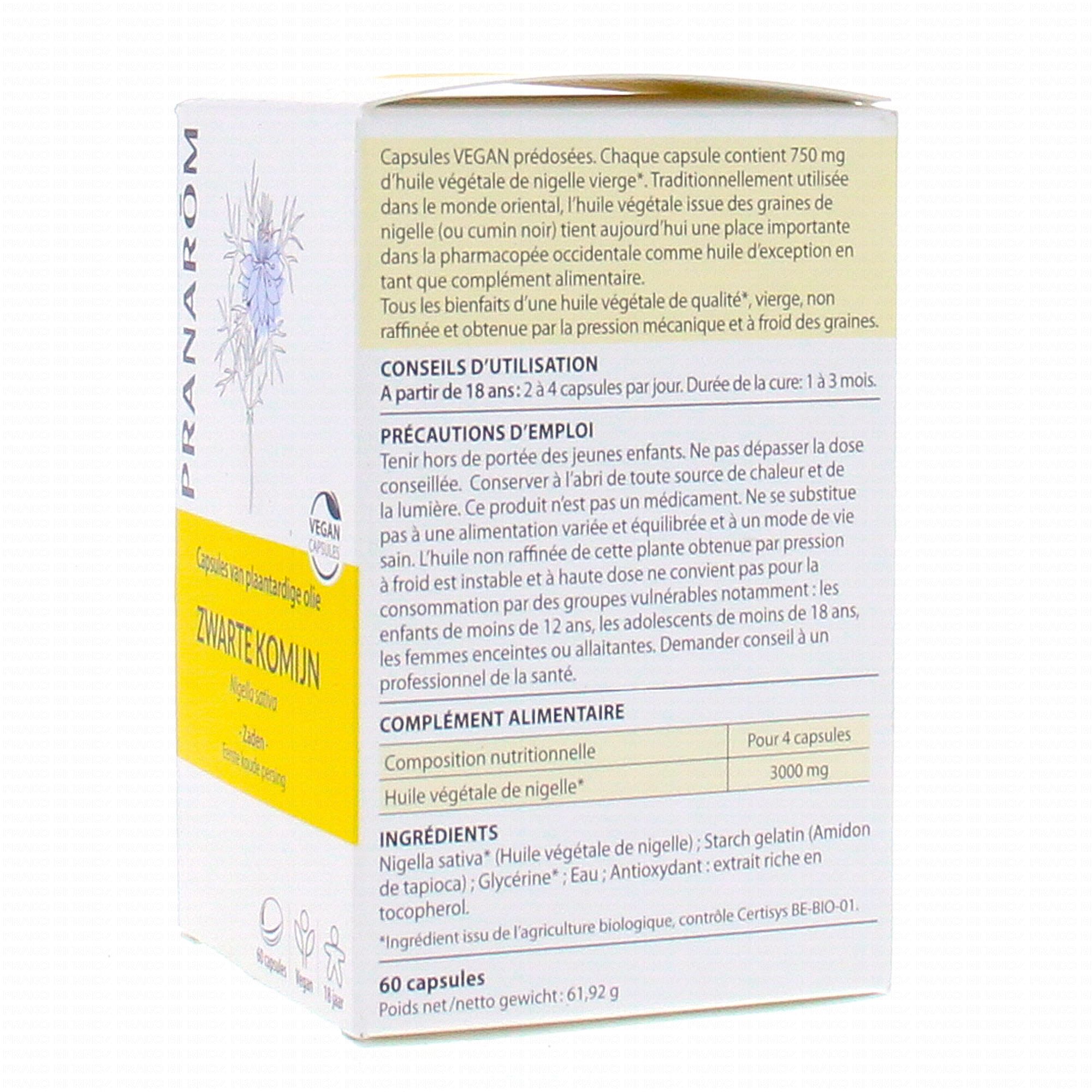 PRANAROM Capsules d'Huile végétale de Nigelle 60 capsules