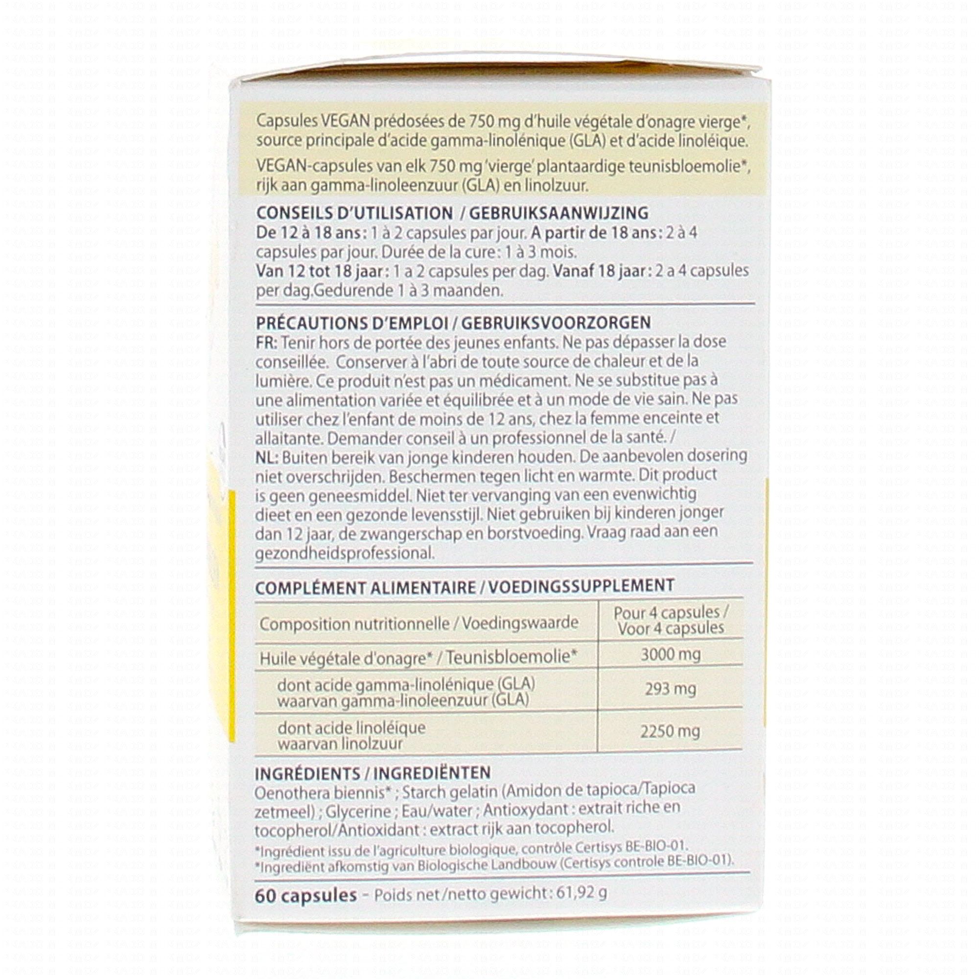 PRANAROM Capsules d'huile végétale Onagre x60 contient les éléments suivants :