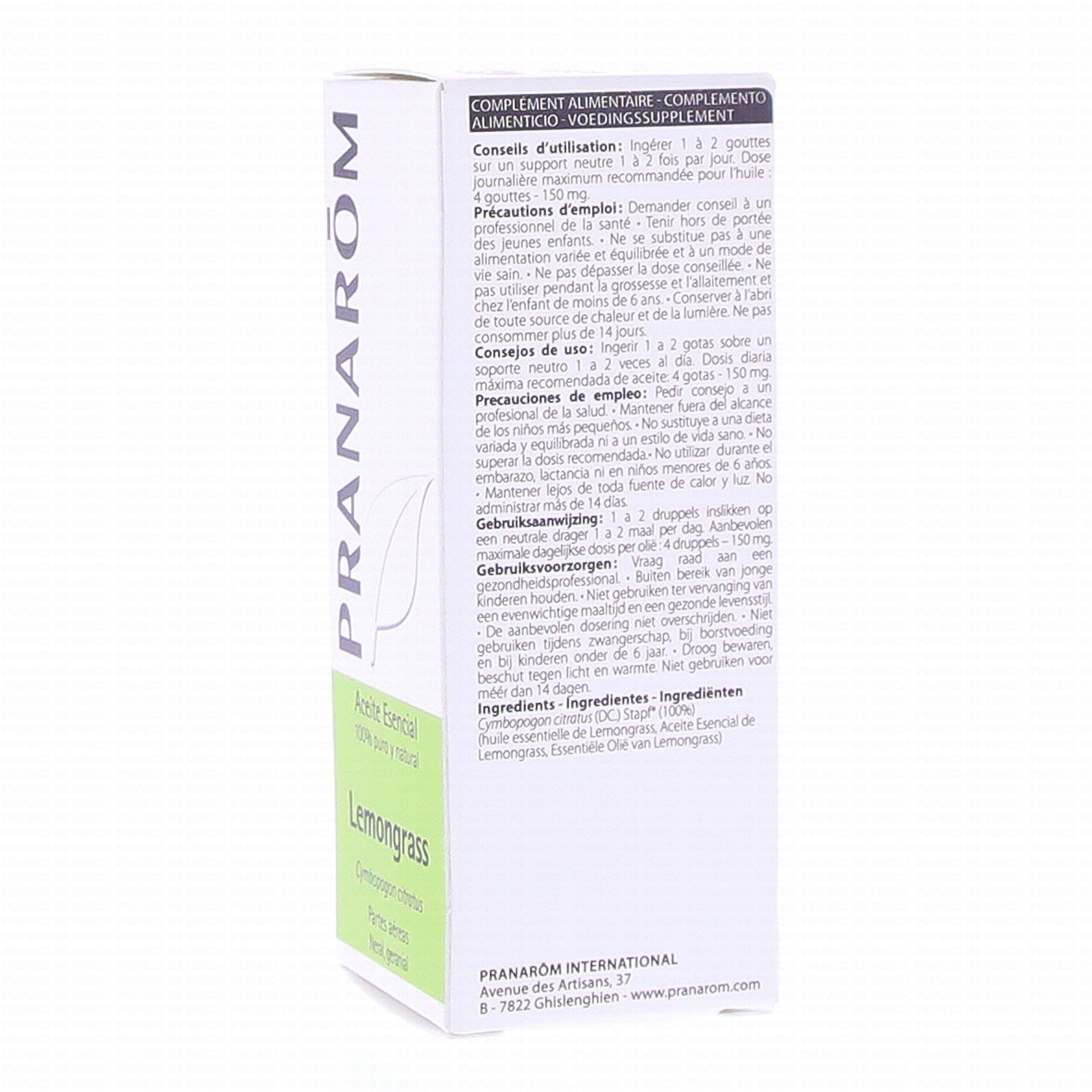 PRANAROM Huile Essentielle de Lemongrass 10ml