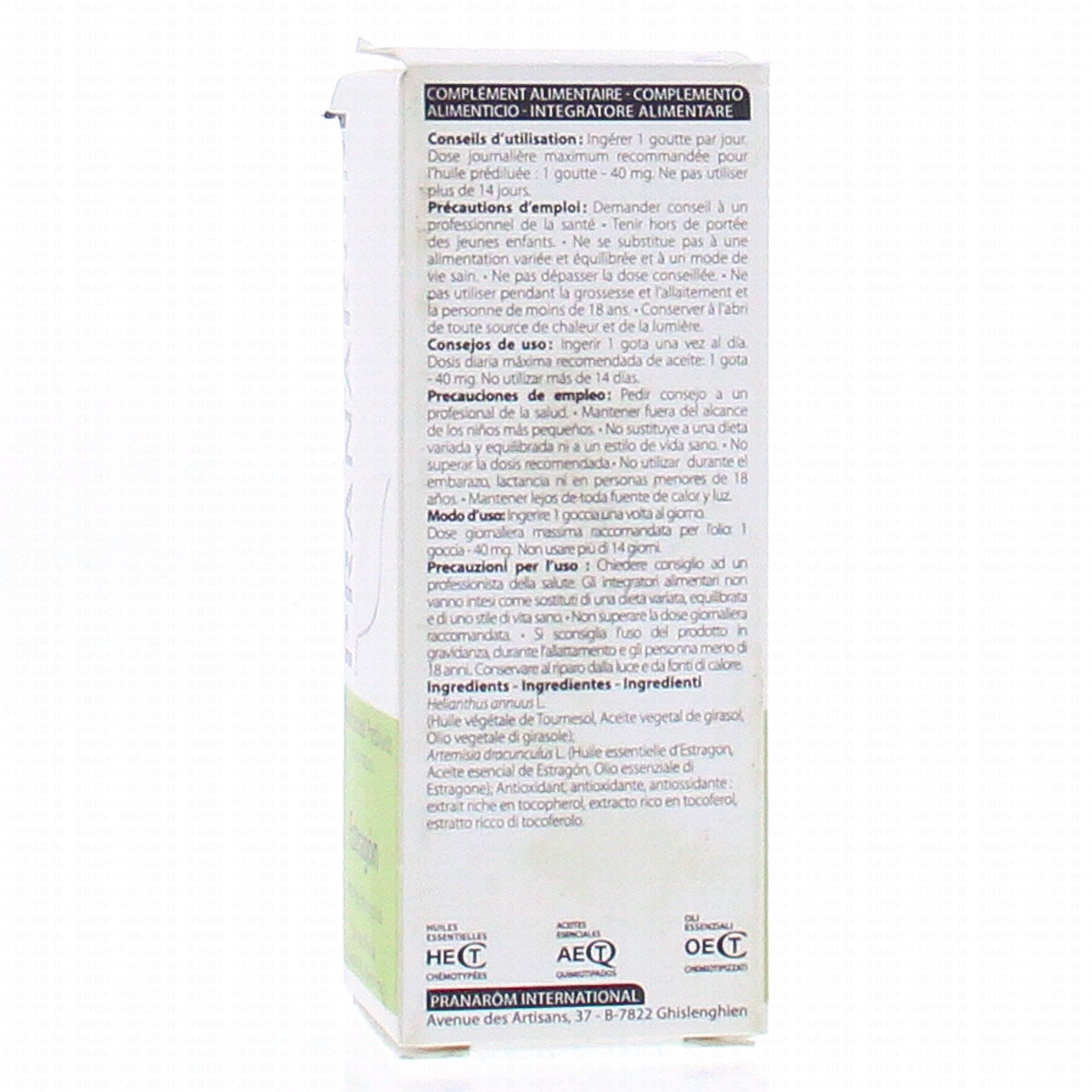 Huile essentielle estragon bio sous le nom latin Artemisia dracunculus.