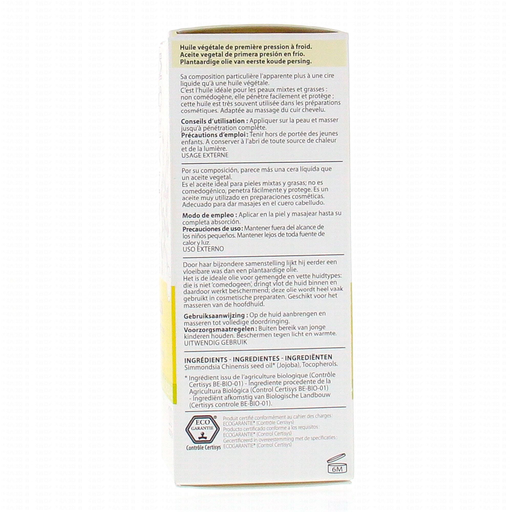 L'huile Végétale Jojoba Bio et 100% naturelle de chez Pranarom régule la sécrétion séborréique de tous les types de peaux, hydratante et adoucissante, elle peut être également utilisée sur tous les types de cheveux en massage. Non comédogène, elle pénètre rapidement et renforce le film hydrolipidique cutané, redonne souplesse et brillance à la chevelure.