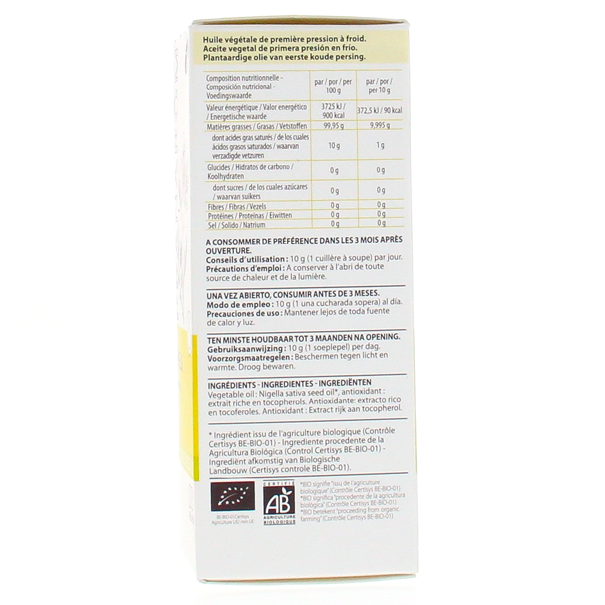 PRANAROM Huile végétale - Huile de Nigelle 50ml bio contient les éléments suivants :