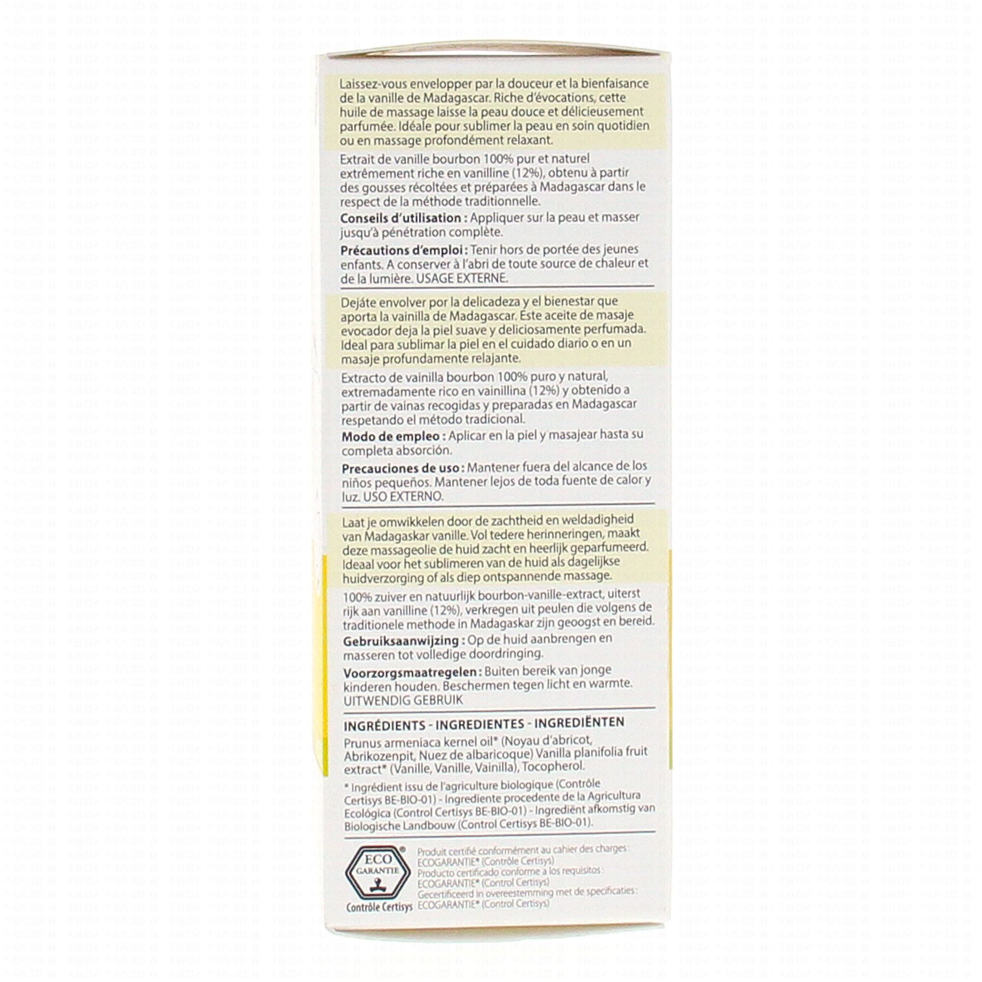 Prunus armeniaca kernol oil* (Noyau d'abricot), Vanilla planifolia fruit extract*(Vanille), Tocopherol.