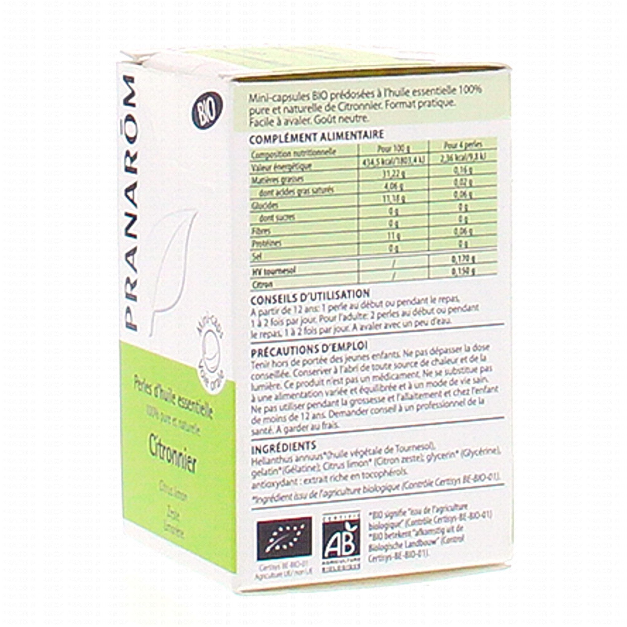 PRANAROM Perles d'huile essentielle Citronnier bio x60