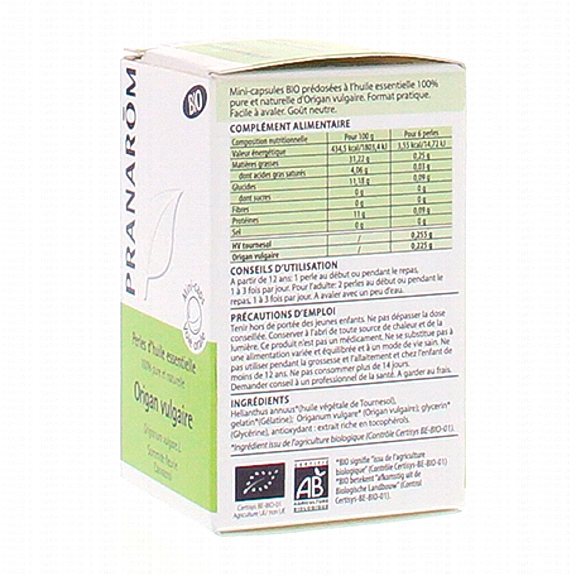 PRANAROM Perles d'huile essentielle Origan vulgaire bio x60