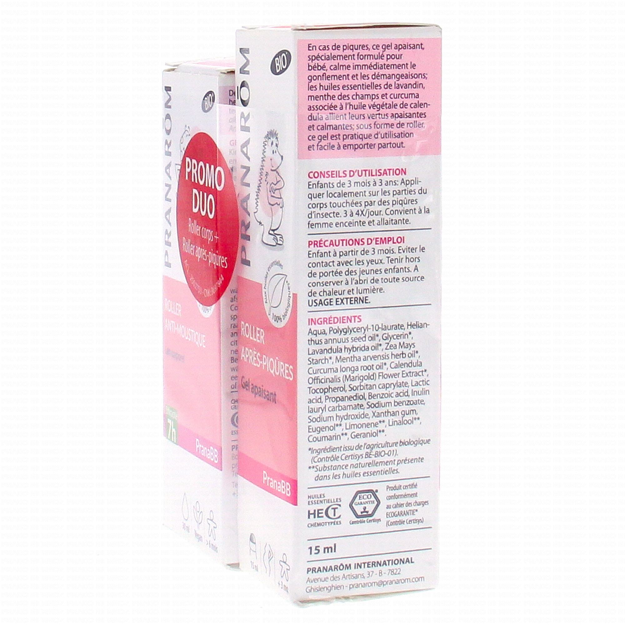 En cas de piqures, ce gel apaisant, spécialement formulé pour bébé, calme immédiatement le gonflement et les démangeaisons; les huiles essentielles de lavandin, menthe des champs et curcuma associée à l'huile végétale de calendula allient leurs vertus apaisantes et calmantes; sous forme de roller, ce gel est pratique d'utilisation et facile à emporter partout.