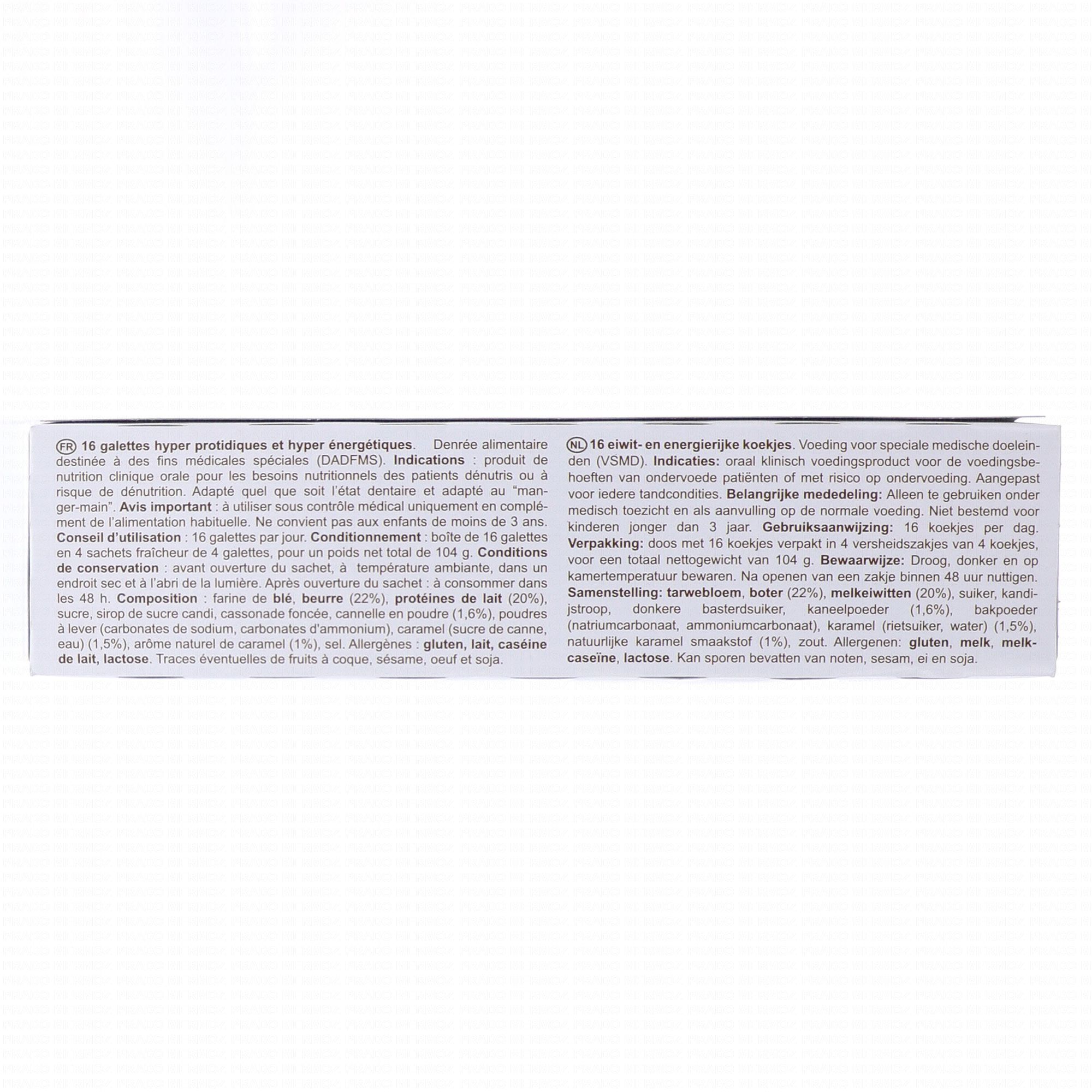 NUTRISENS Protibis Galettes Spéculoos x16 est un complément alimentaire destiné aux personnes ayant besoin d'un apport accru en protéines et en calories. 8 galettes apportent 11,5 grammes de protéines et 250kcal.