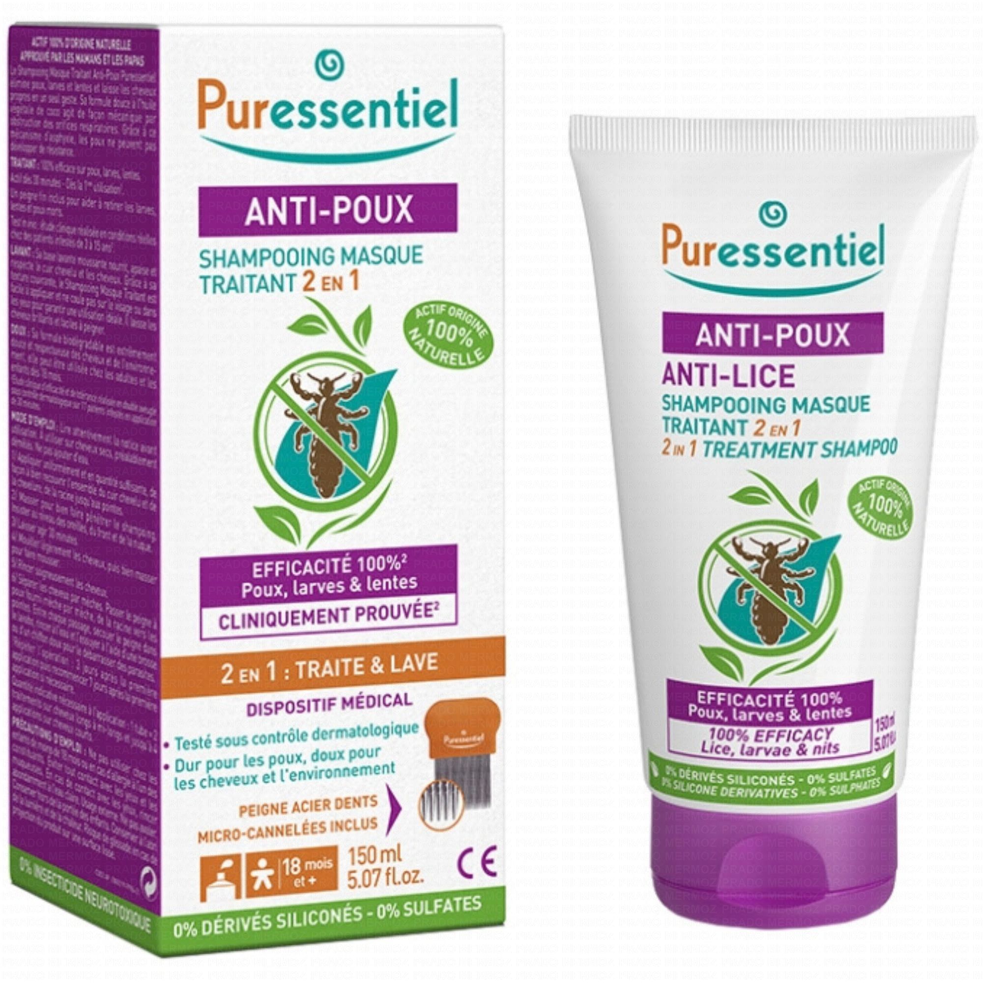 PURESSENTIEL Anti-Poux - Shampooing masque traitant 2en1 150 ml
