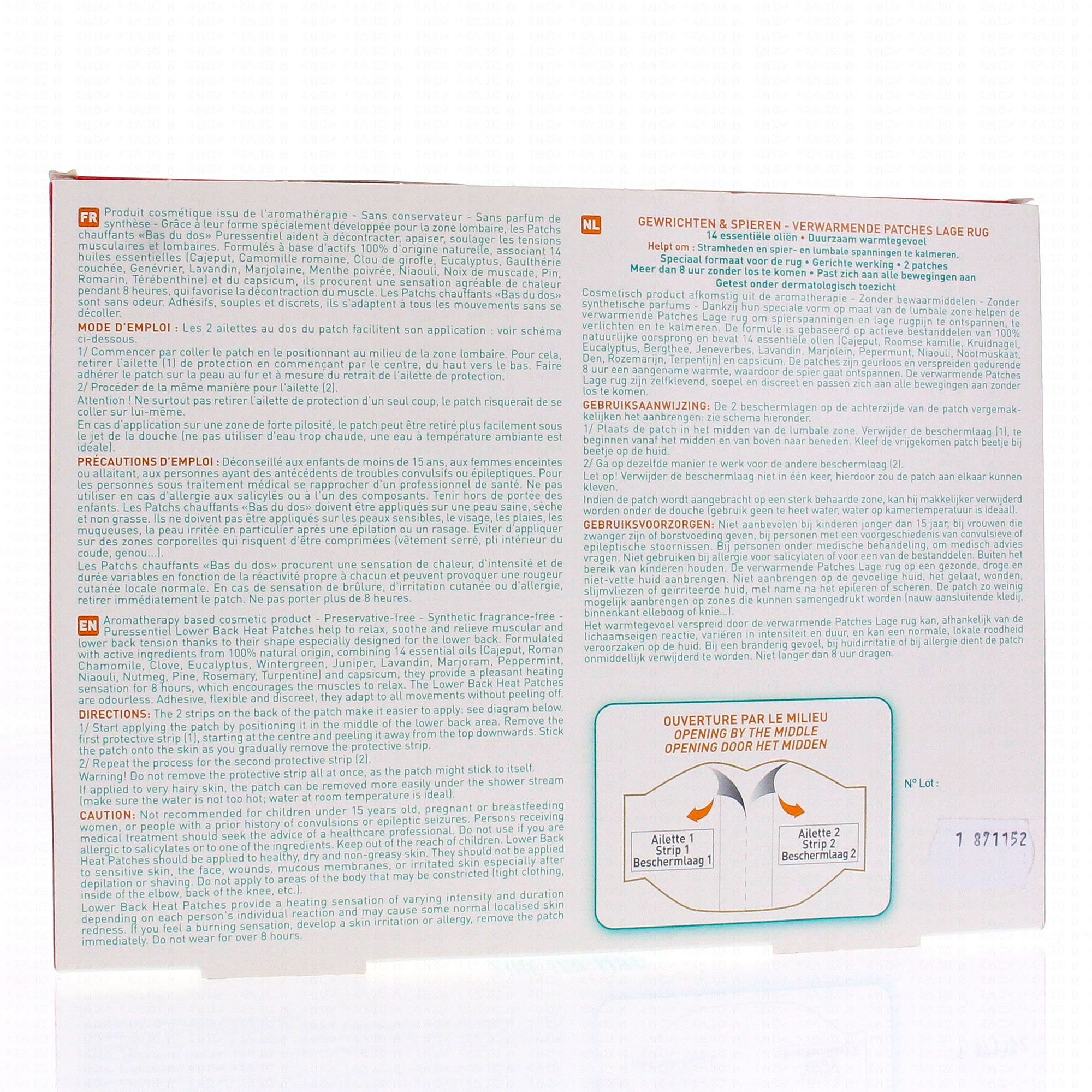 Son action chauffante décontracte, apaise et soulage les tensions musculaires et lombaires. Formulés à base d'actifs 100% d'origine naturelle, sa formule associe 14 huiles essentielles et de capsicum, ils procurent une sensation agréable de chaleur pendant 8h.