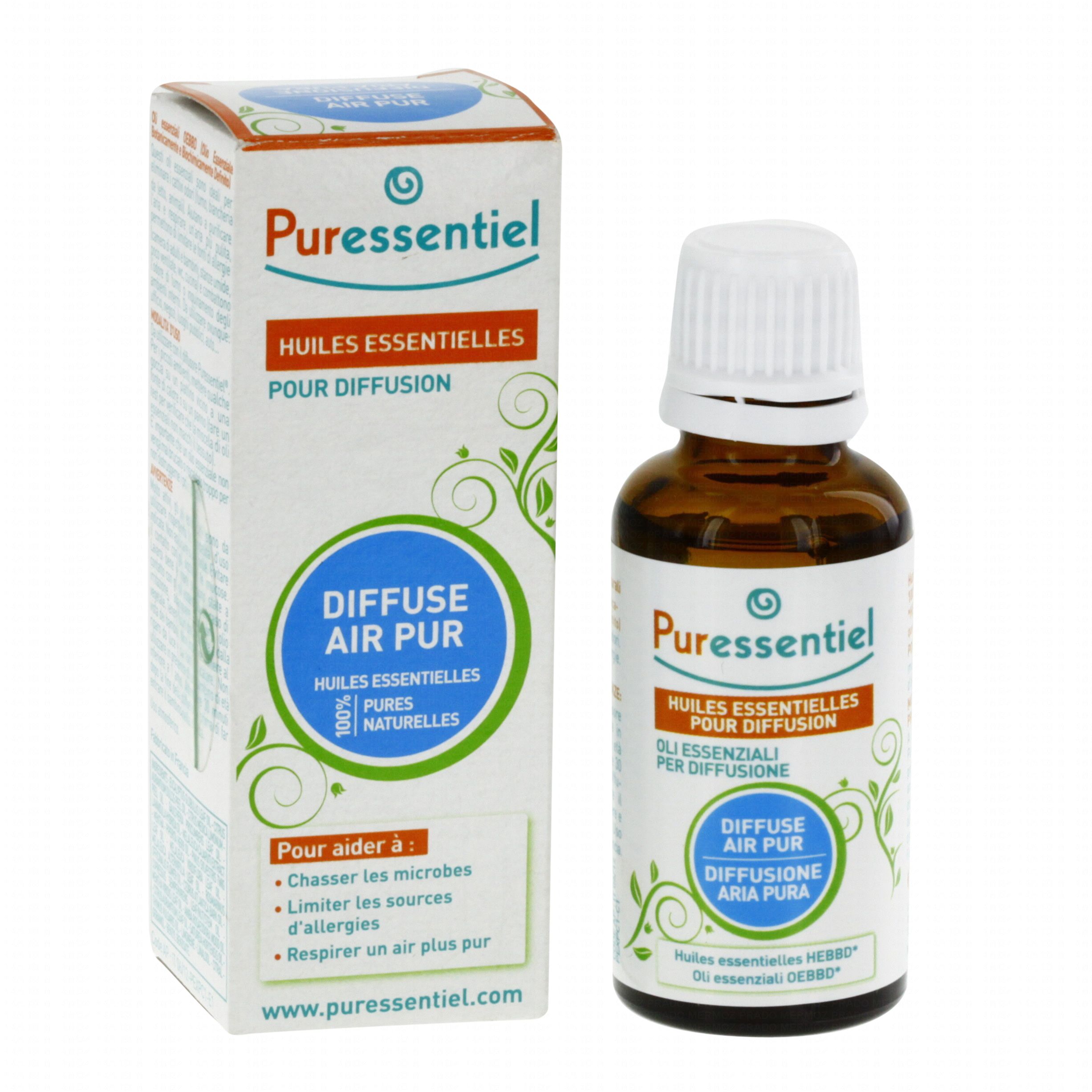 Formulé à base d'Huiles Essentielles principalement assainissantes, désinfectantes et anti-microbes, le Diffuse Air Pur limite les sources d'allergies et lutte contre la pollution.