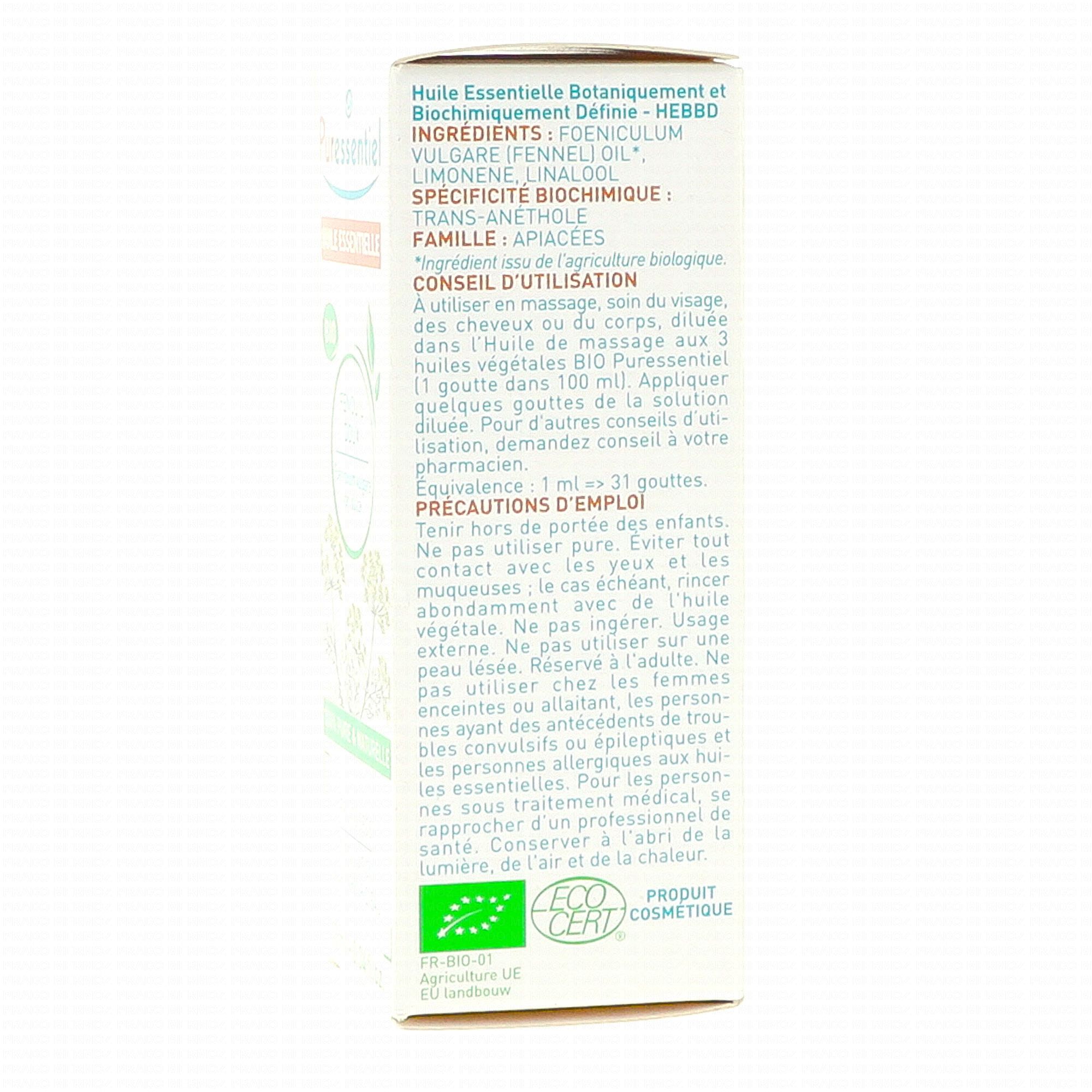 PURESSENTIEL Huile Essentielle Fenouil Doux Bio 10ml