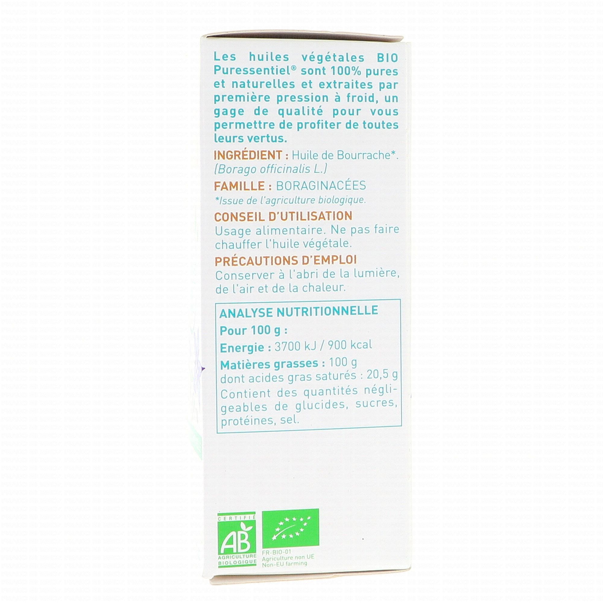 PURESSENTIEL Huile Végétale Bourrache bio 50ml contient les éléments suivants :
