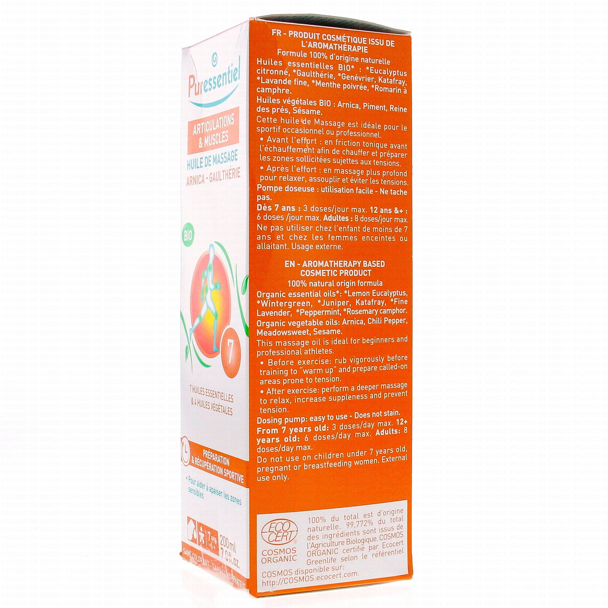 PURESSENTIEL Huile de massage articulations et muscles bio (flacon 200ml)