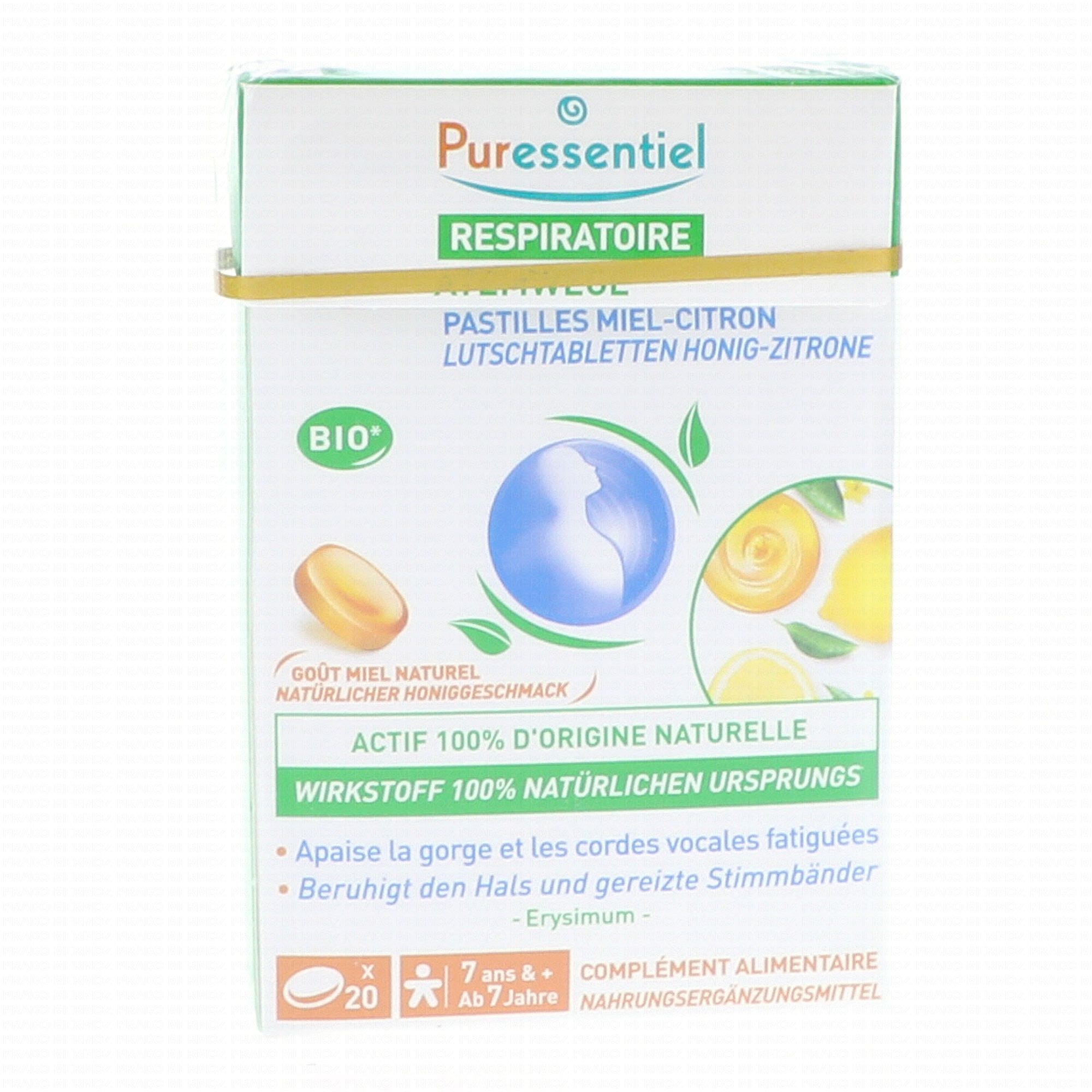 PURESSENTIEL Pastilles Respiratoire Gorge Miel-Citron bio x20 contient les éléments suivants :