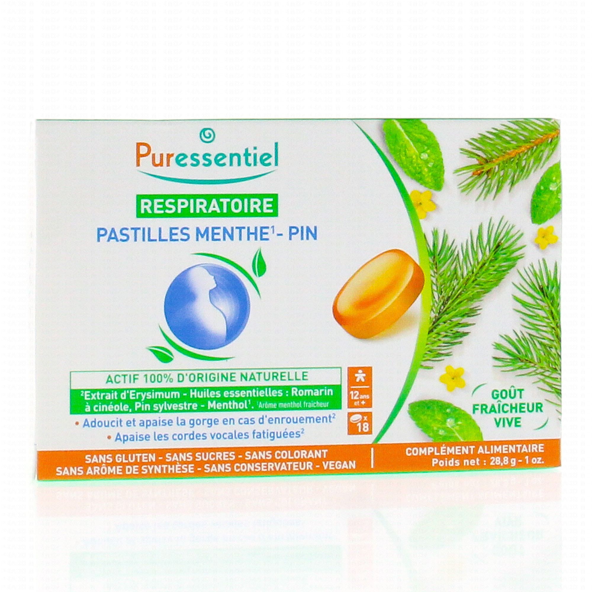 PURESSENTIEL Respiratoire Pastilles Menthe-Pin x18 pastilles contient les éléments suivants :