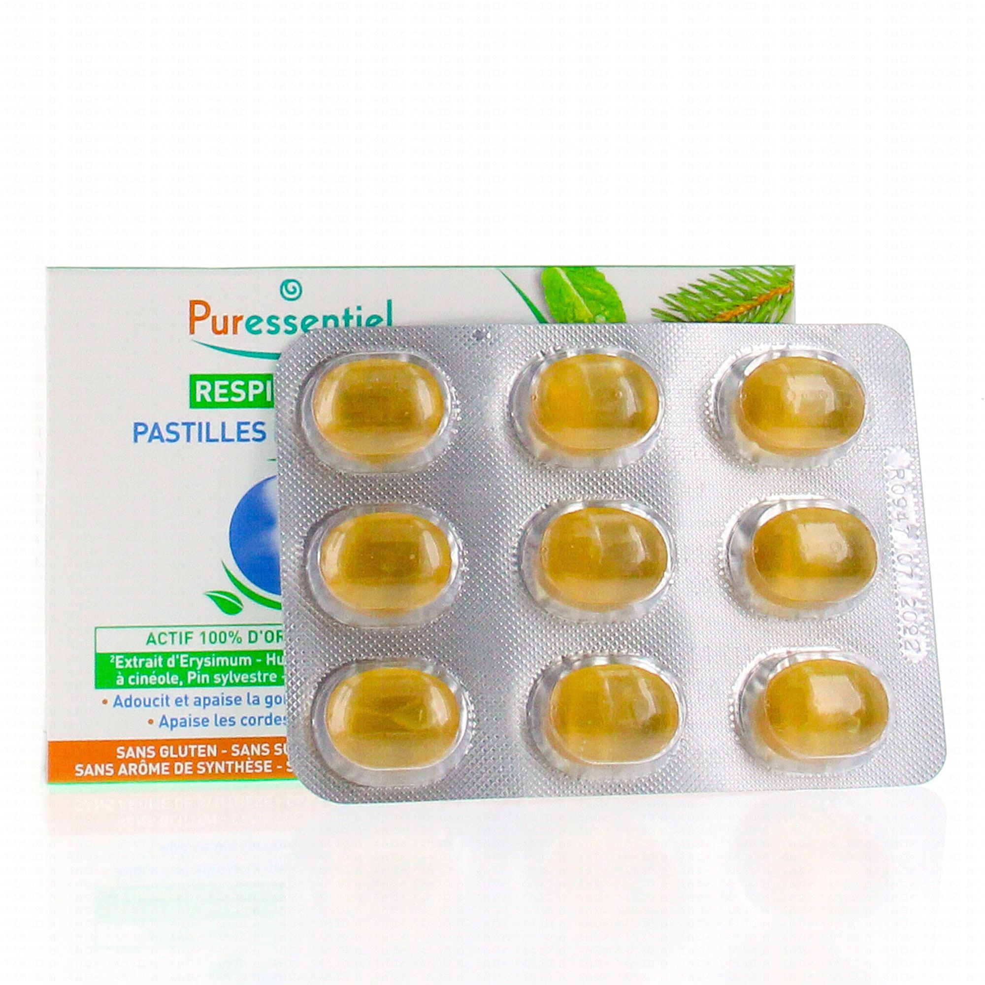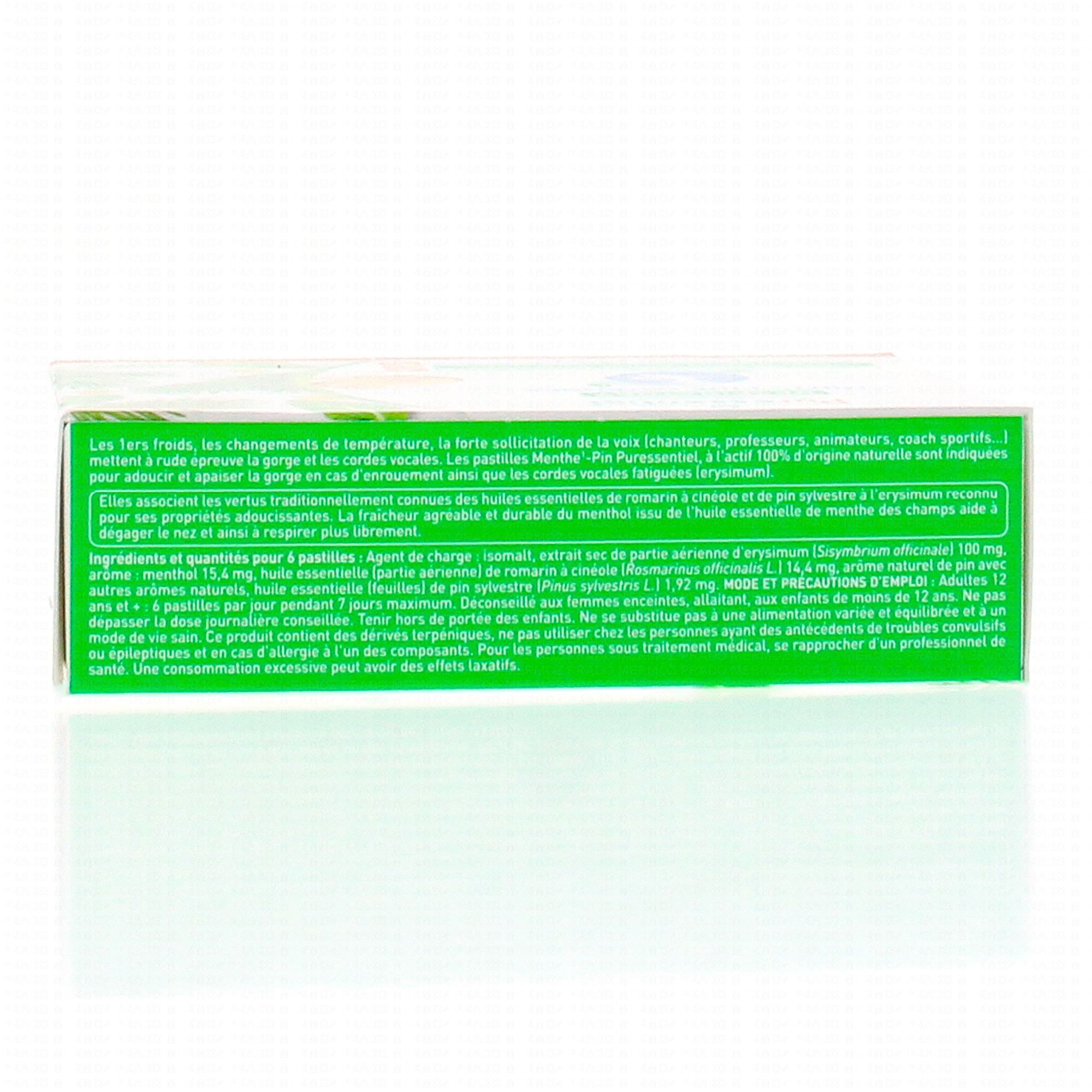 PURESSENTIEL Respiratoire Pastilles Menthe-Pin x18 pastilles est un complément alimentaire qui participe au confort de la gorge grâce à la présence d'Erysimum.