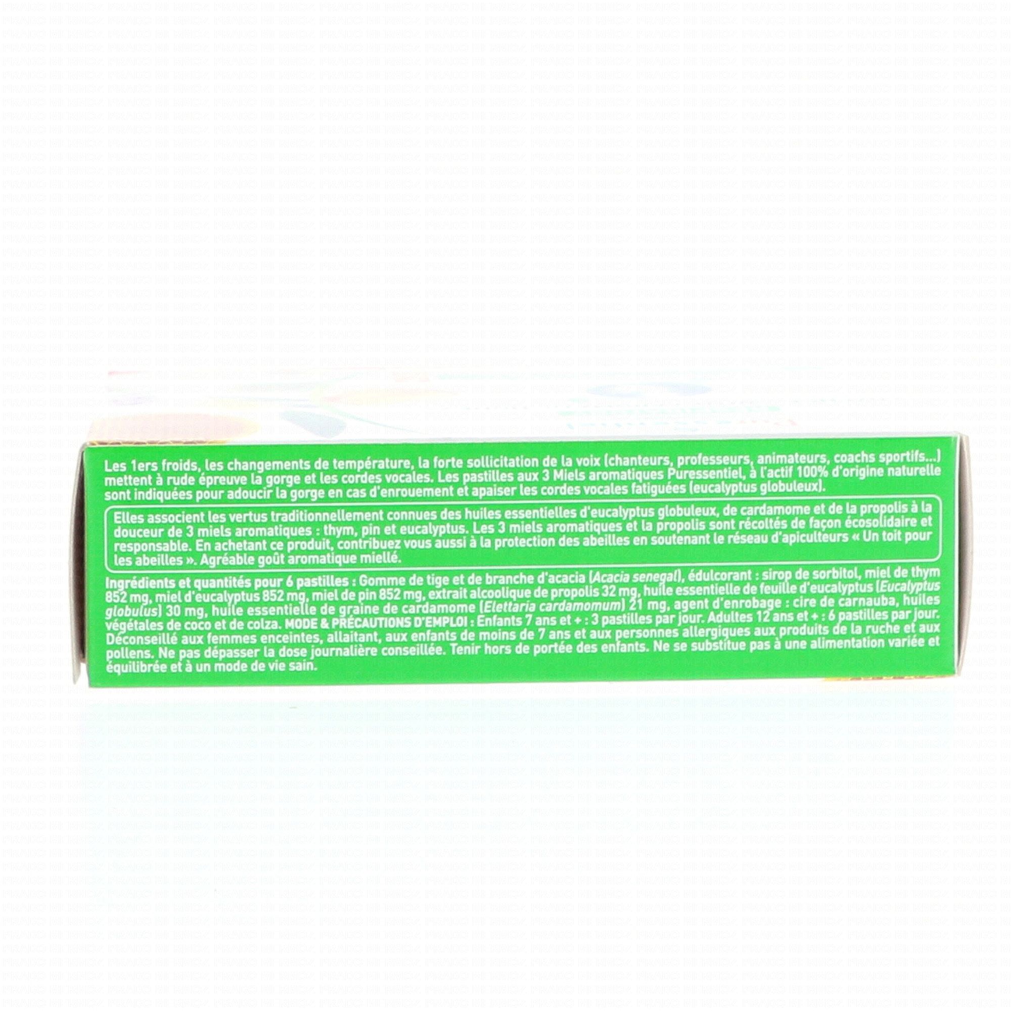 PURESSENTIEL Respiratoire Pastilles aux 3 Miels Aromatiques 18 pastilles contient les éléments suivants :