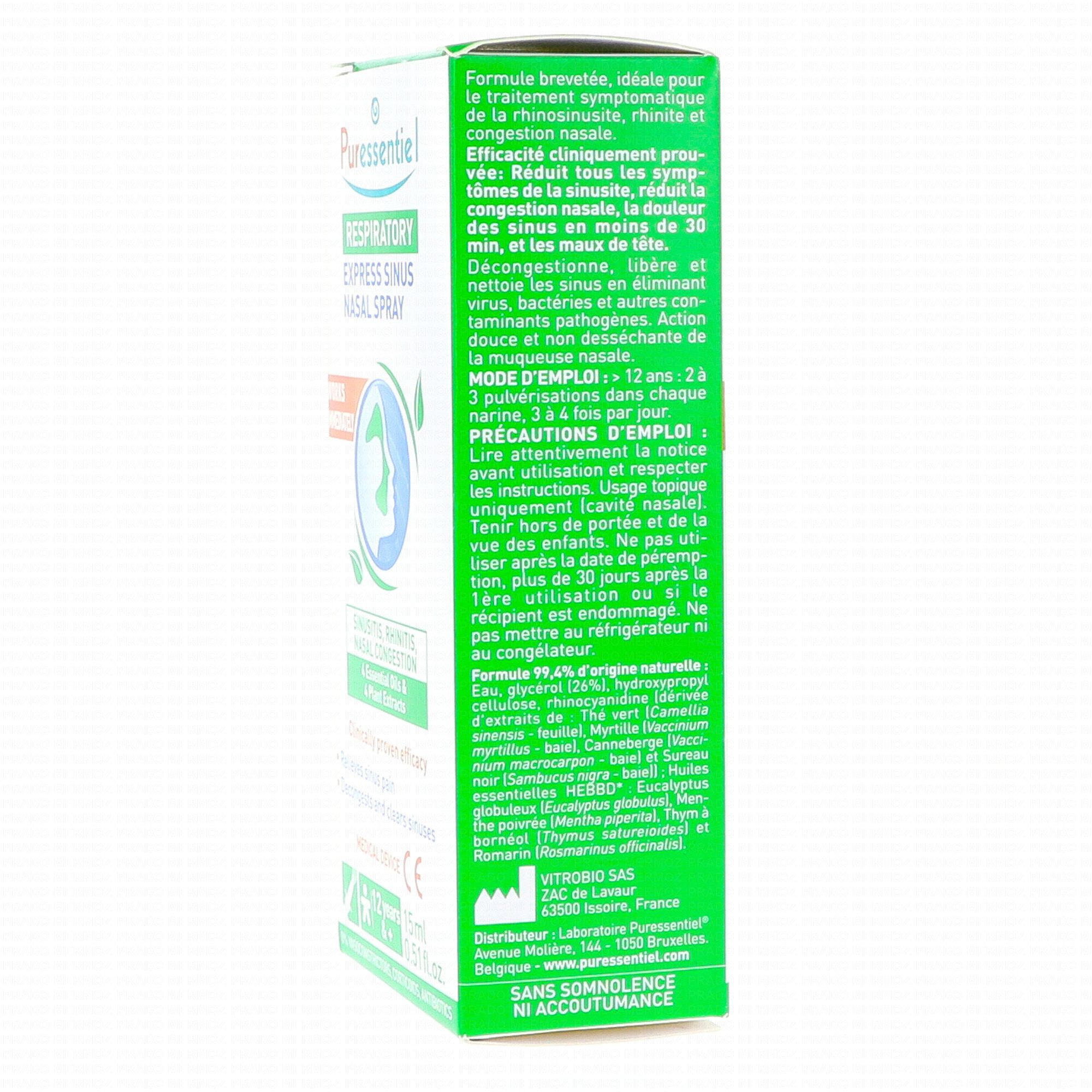 PURESSENTIEL Respiratoire sinus express spray nasal 15 ml