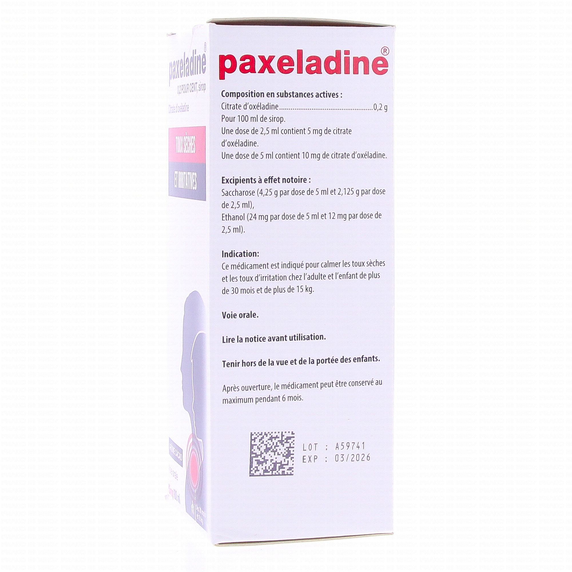 Paxéladine 0,2 pour cent Sirop flacon 100ml - Illustration n°2