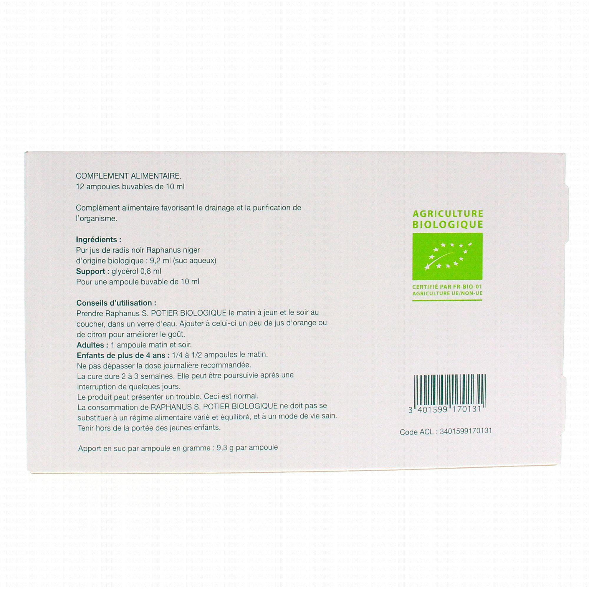 Raphanus Potier 12 ampoules contient les éléments suivants :