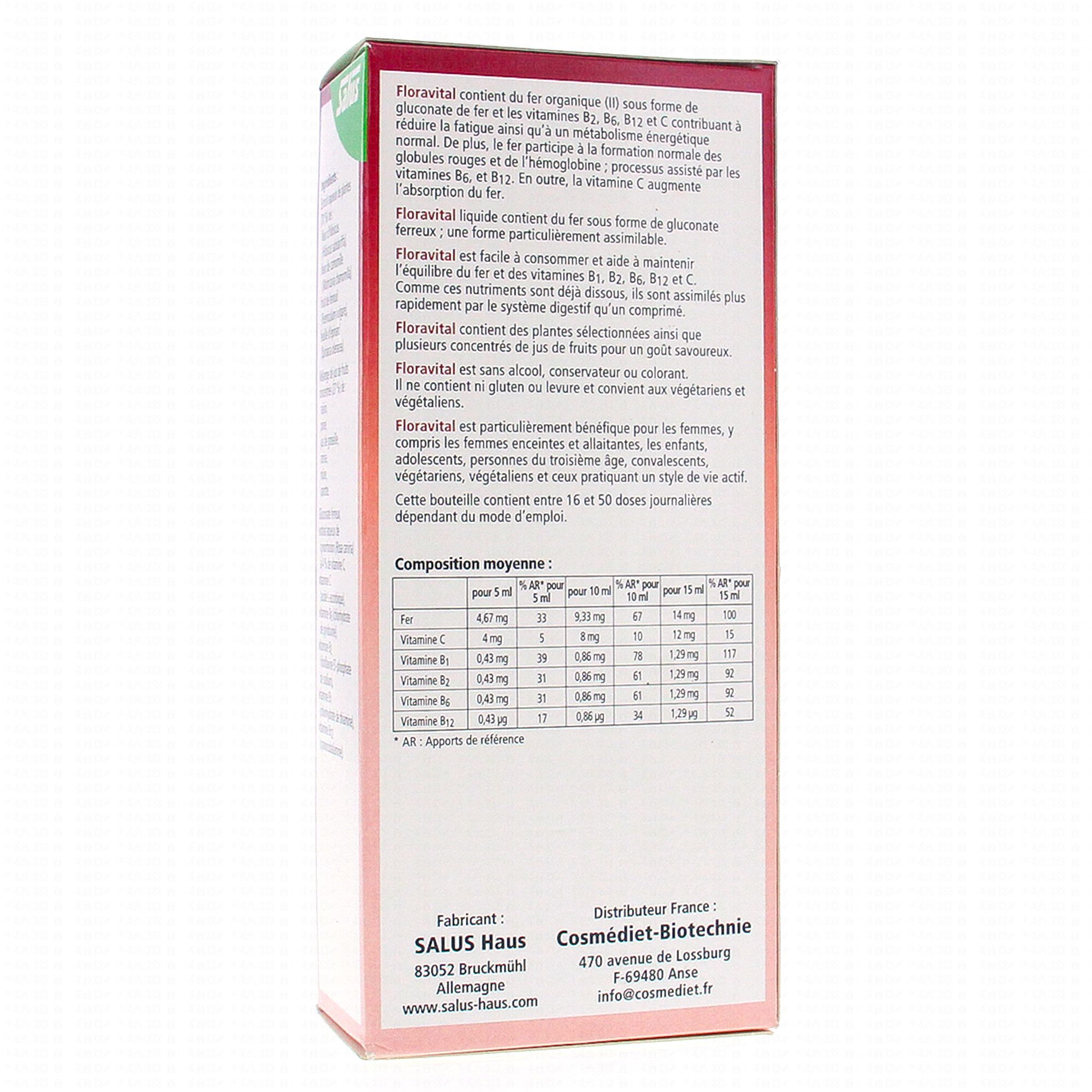 SALUS Floravital Fer + Plantes 250ml contient les éléments suivants :