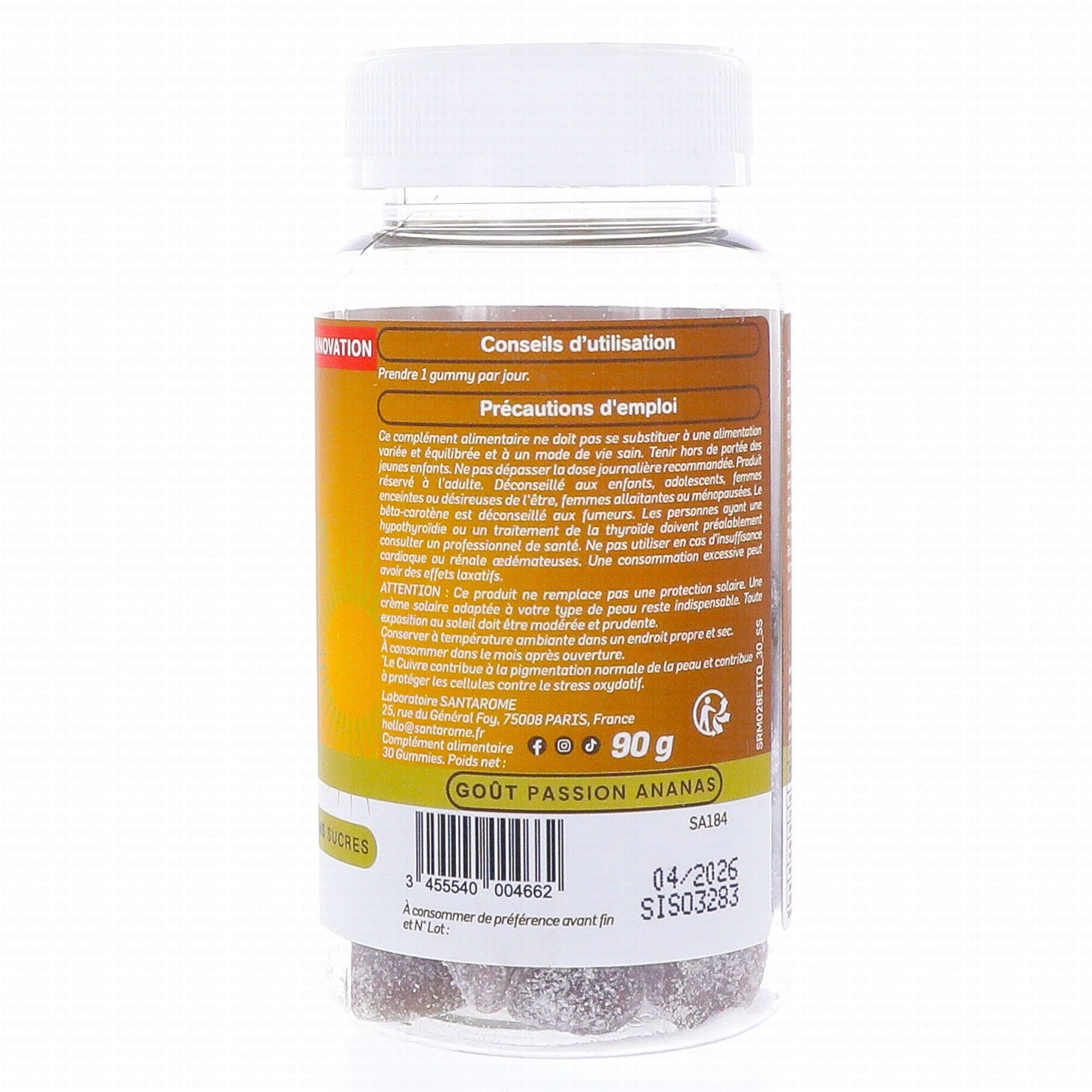 SANTAROME Sublime Soleil 2En1 x30 gummies contient les éléments suivants :