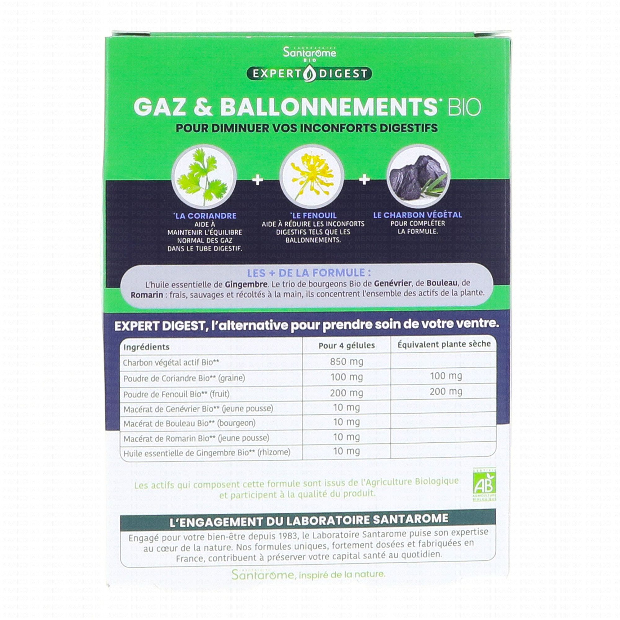 SANTAROME Expert Digest - Gaz et Ballonnements Double Action x30 Gélules contient les éléments suivants :