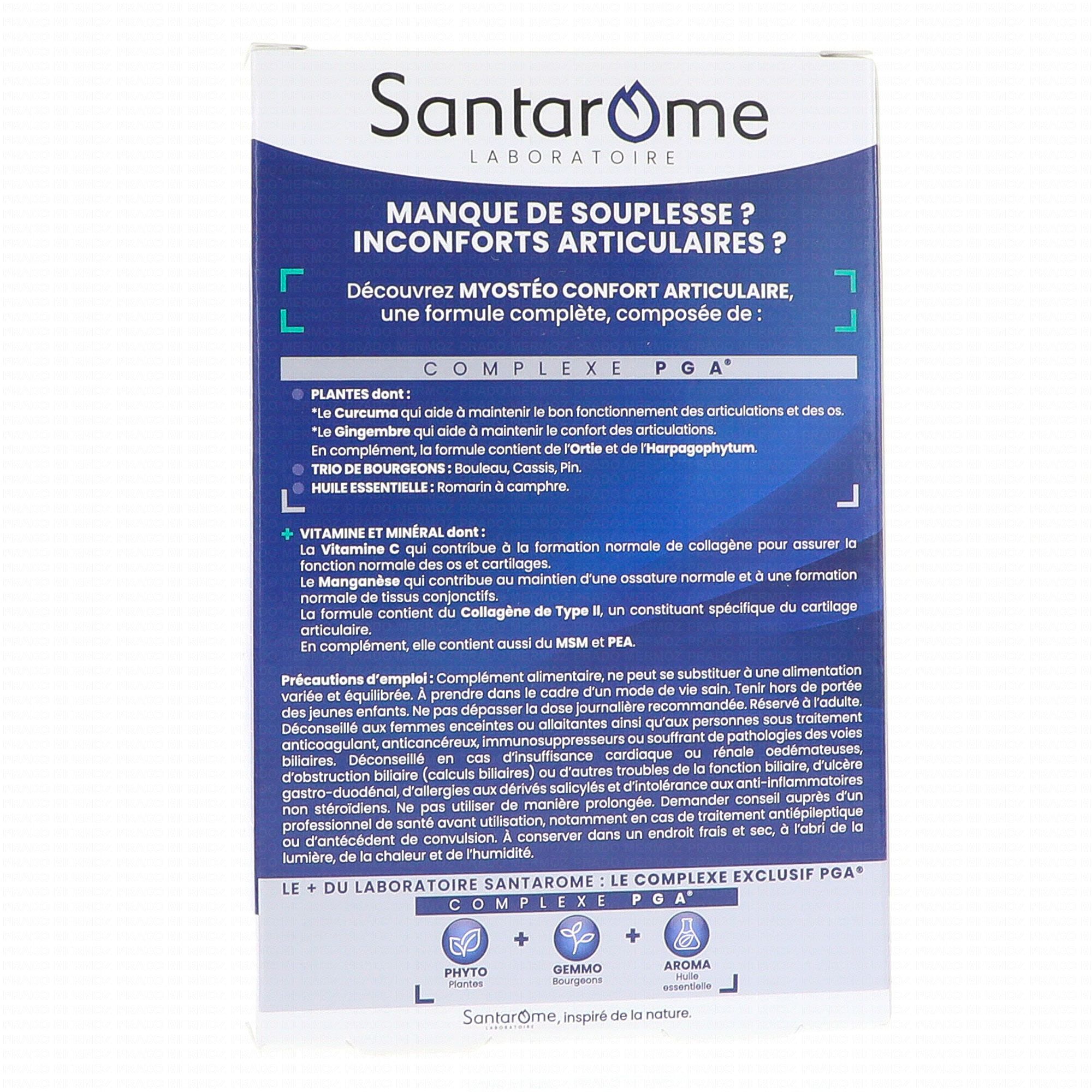 SANTAROME Myosteo Confort articulaire x30 comprimés contient les éléments suivants :