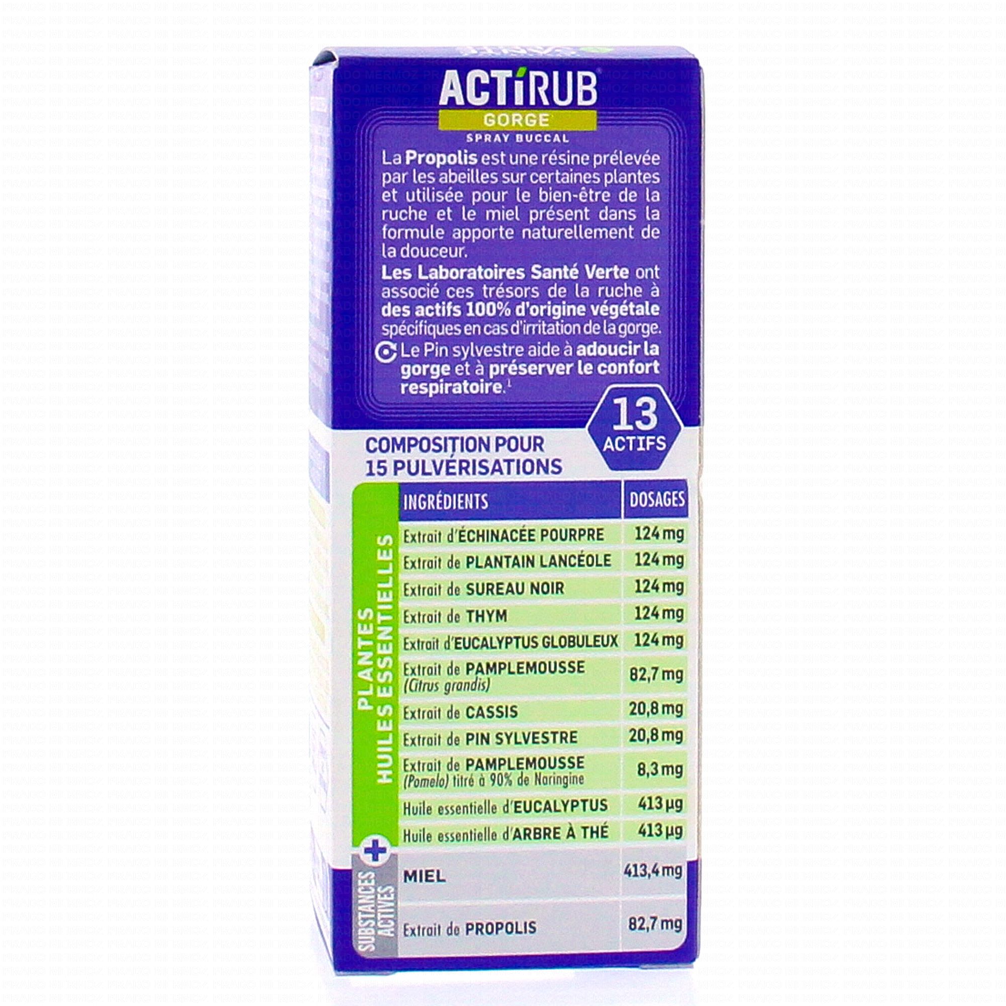 SANTE VERTE Actirub Voies respiratoires 15ml contient les éléments suivants :