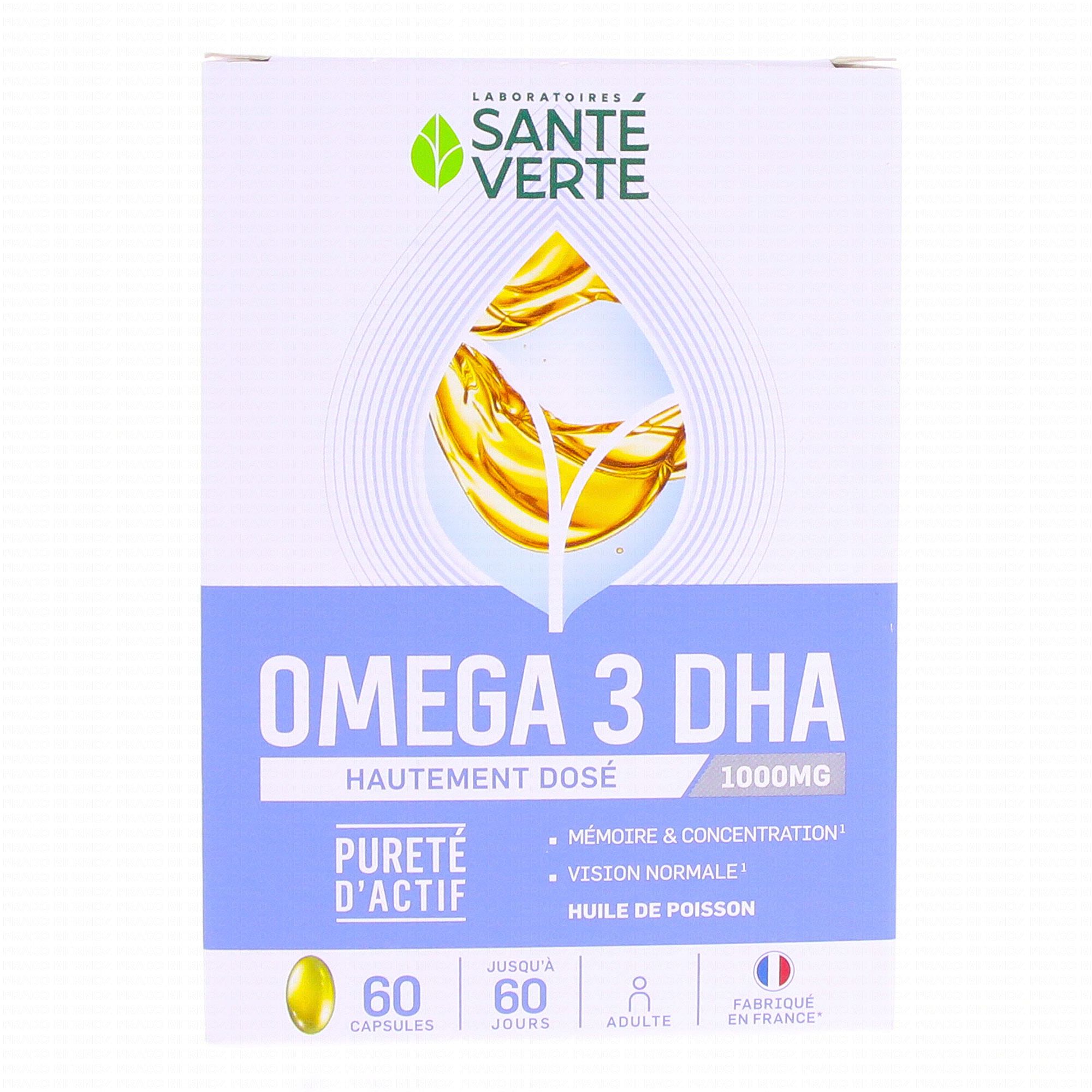 SANTE VERTE Oméga 3 1000mg de DHA mémoire & concentration 60 capsules est complément alimentaire qui contribue à compléter l'apport en acides gras essentiels (non synthétisés par l'organisme).