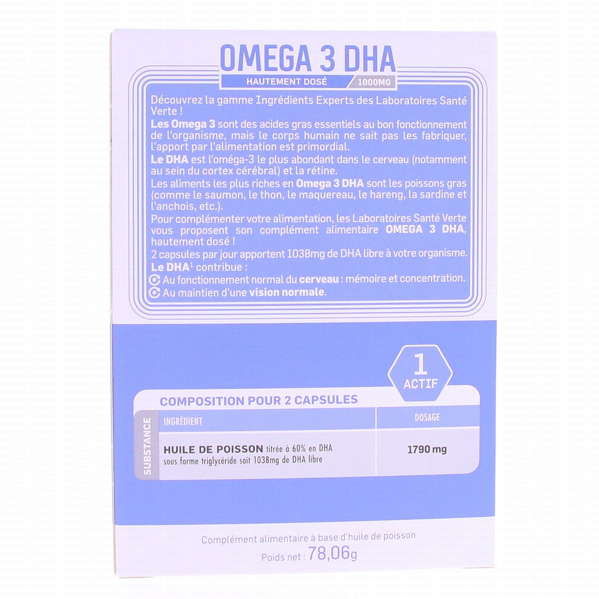SANTE VERTE Oméga 3 1000mg de DHA mémoire & concentration 60 capsules contient les éléments suivants :