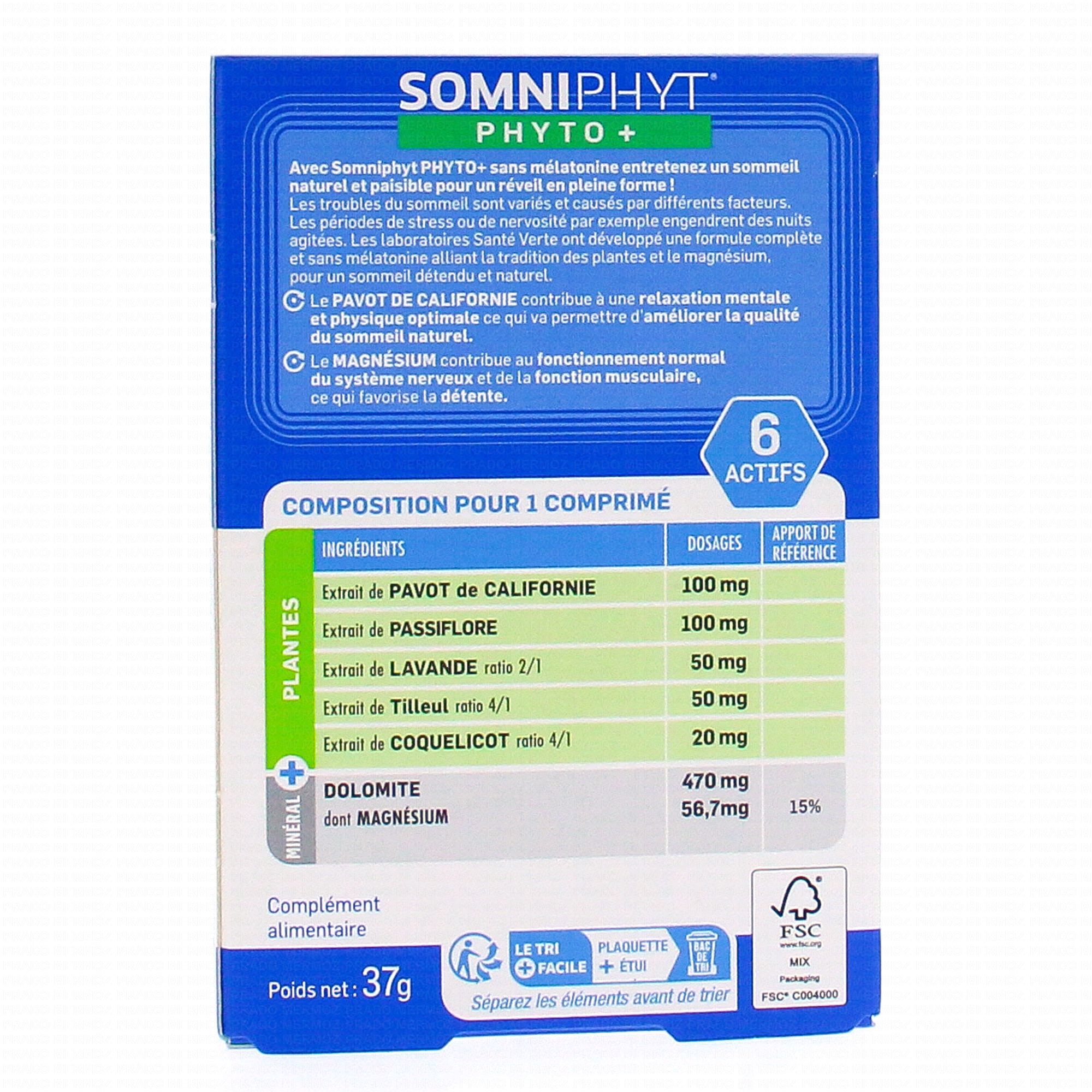 SANTE VERTE Somniphyt Nuit Calme 30 comprimés contient les éléments suivants :