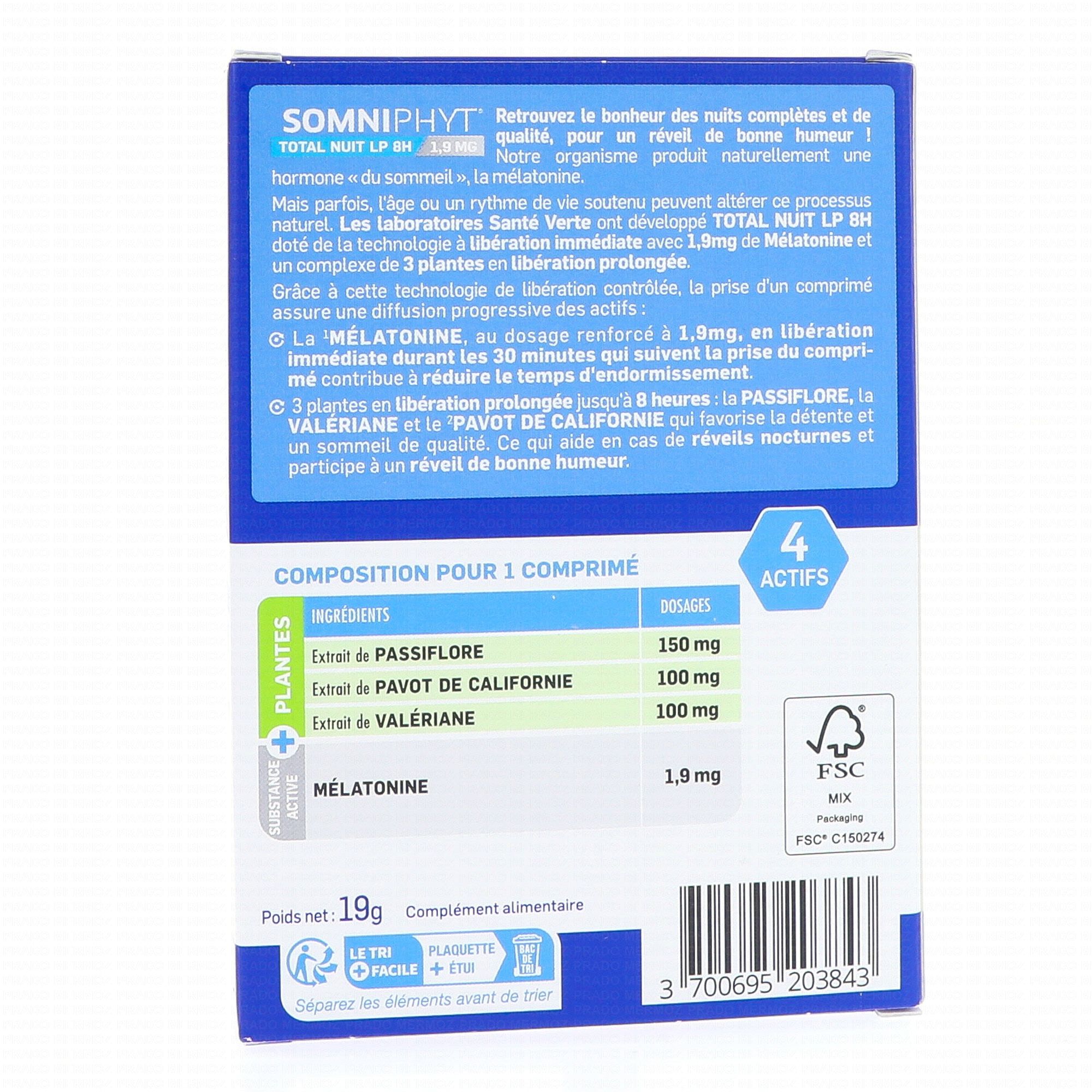 SANTÉ VERTE Somniphyt Total Nuit LP 1.9mg 30 comprimés