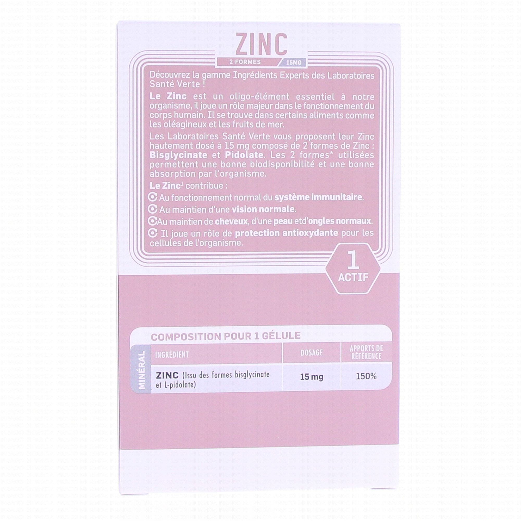 SANTE VERTE Zinc 15mg 60 gélules contient les éléments suivants :