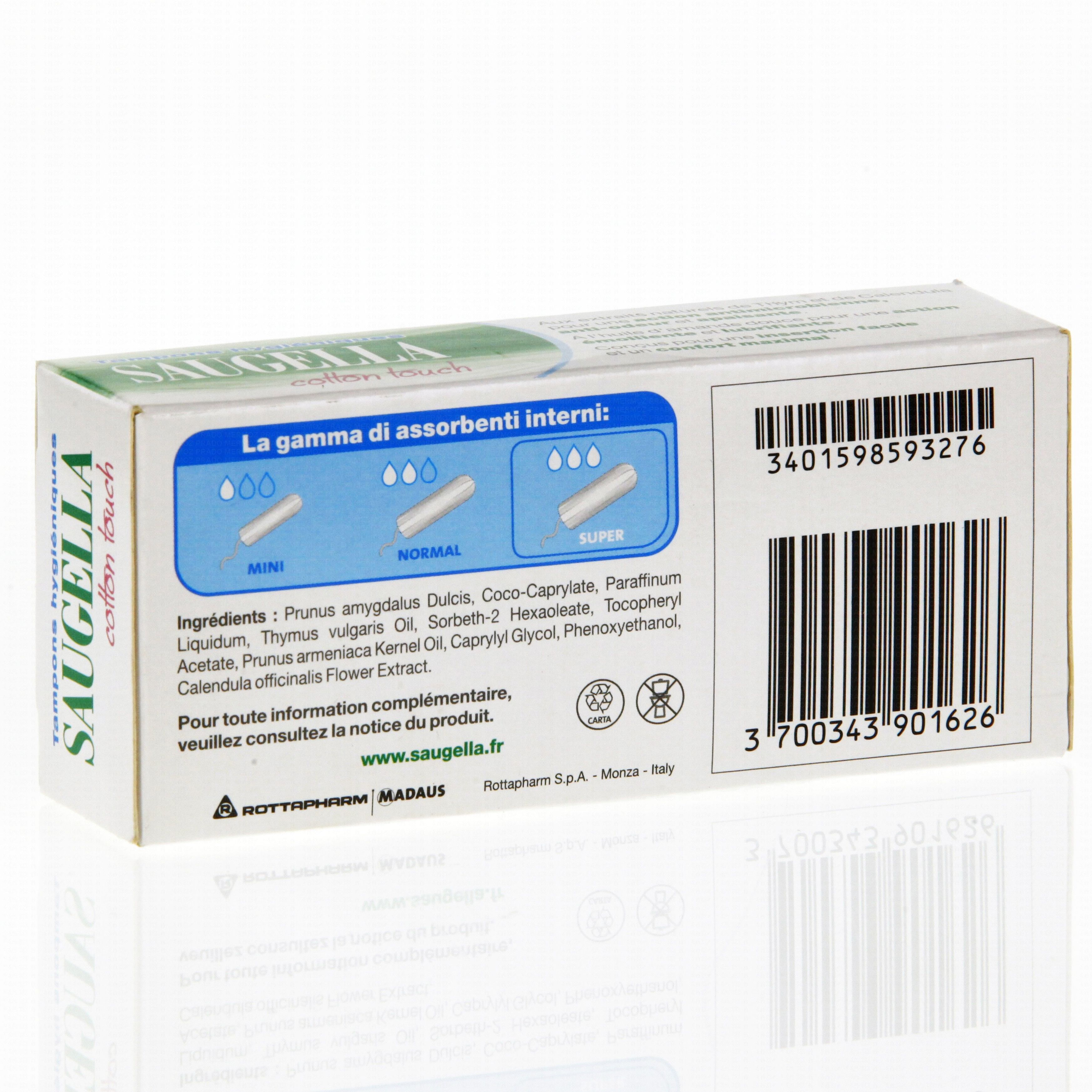 Tampons en coton sans applicateur et hypoallergéniques aux extraits naturels de Thym et de Calendula en coton et hypoallergéniques aux vertus anti-microbienne, anti-odeur et apaisante. L'huile d'amande douce offre une action émolliente et lubrifiante pour une insertion facile et un confort optimal.