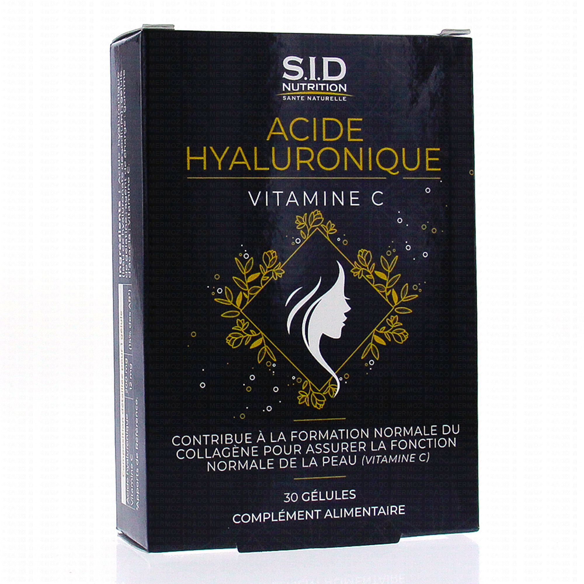 SID Acide Hyaluronique Vitamine C 30 gélules est un complément alimentaire à base d'acide hyaluronique et de vitamine C.