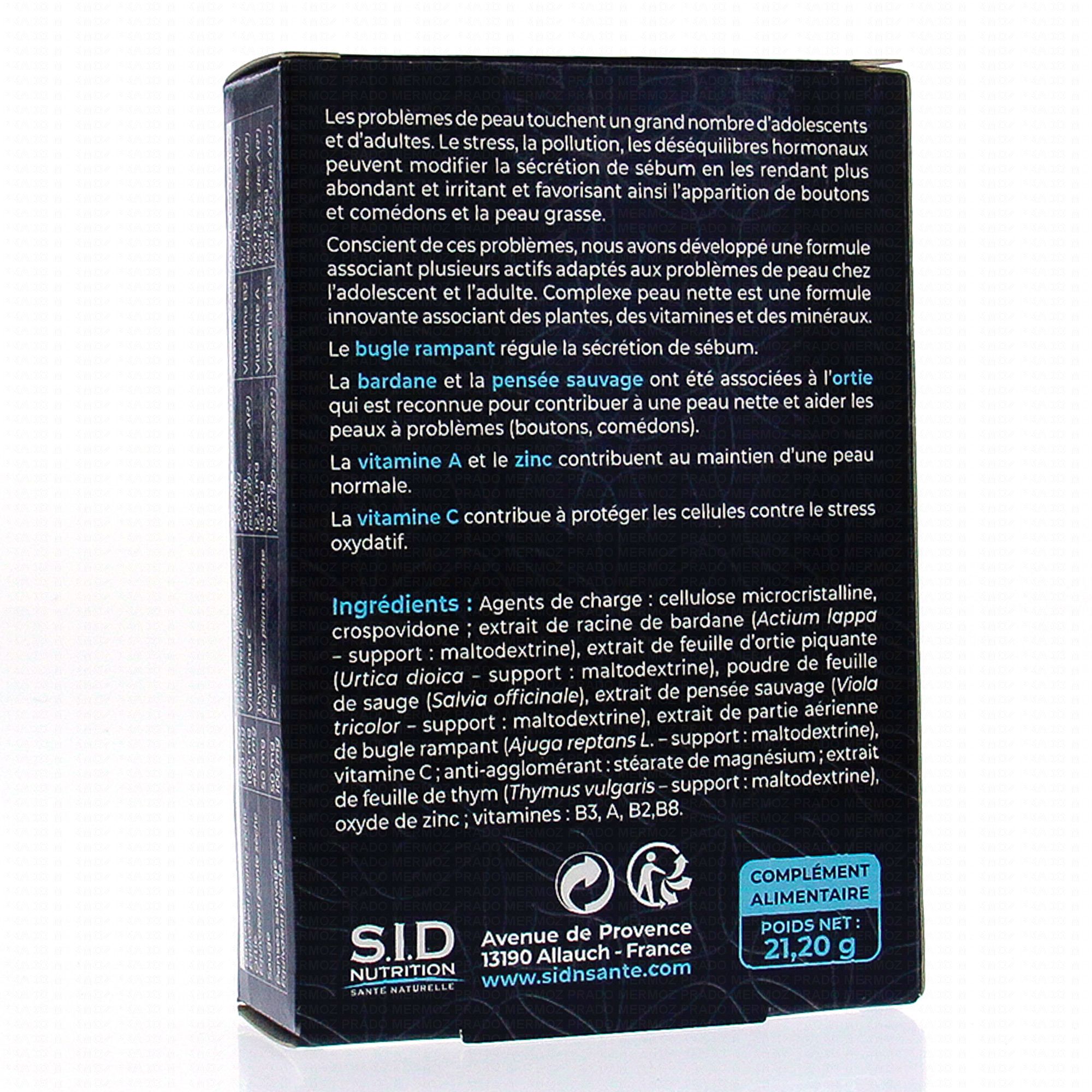 SID Complexe Peau Nette 30 comprimés contient les éléments suivants :