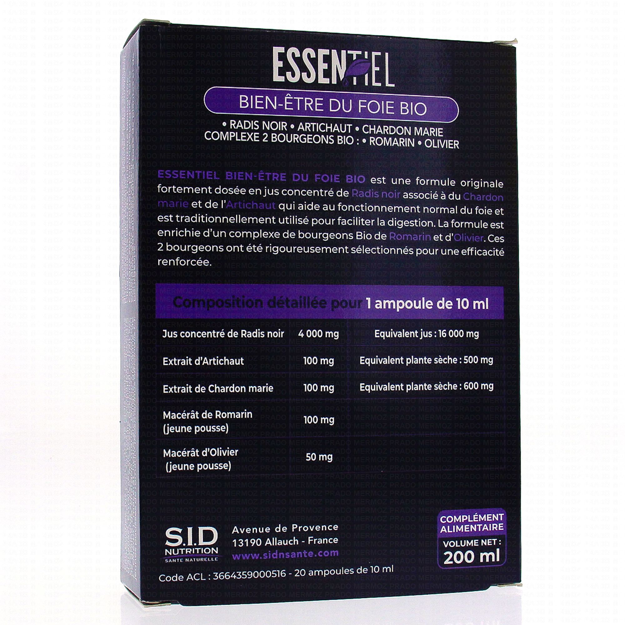 SID Essentiel Bien-être du foie 20 ampoules contient les éléments suivants :