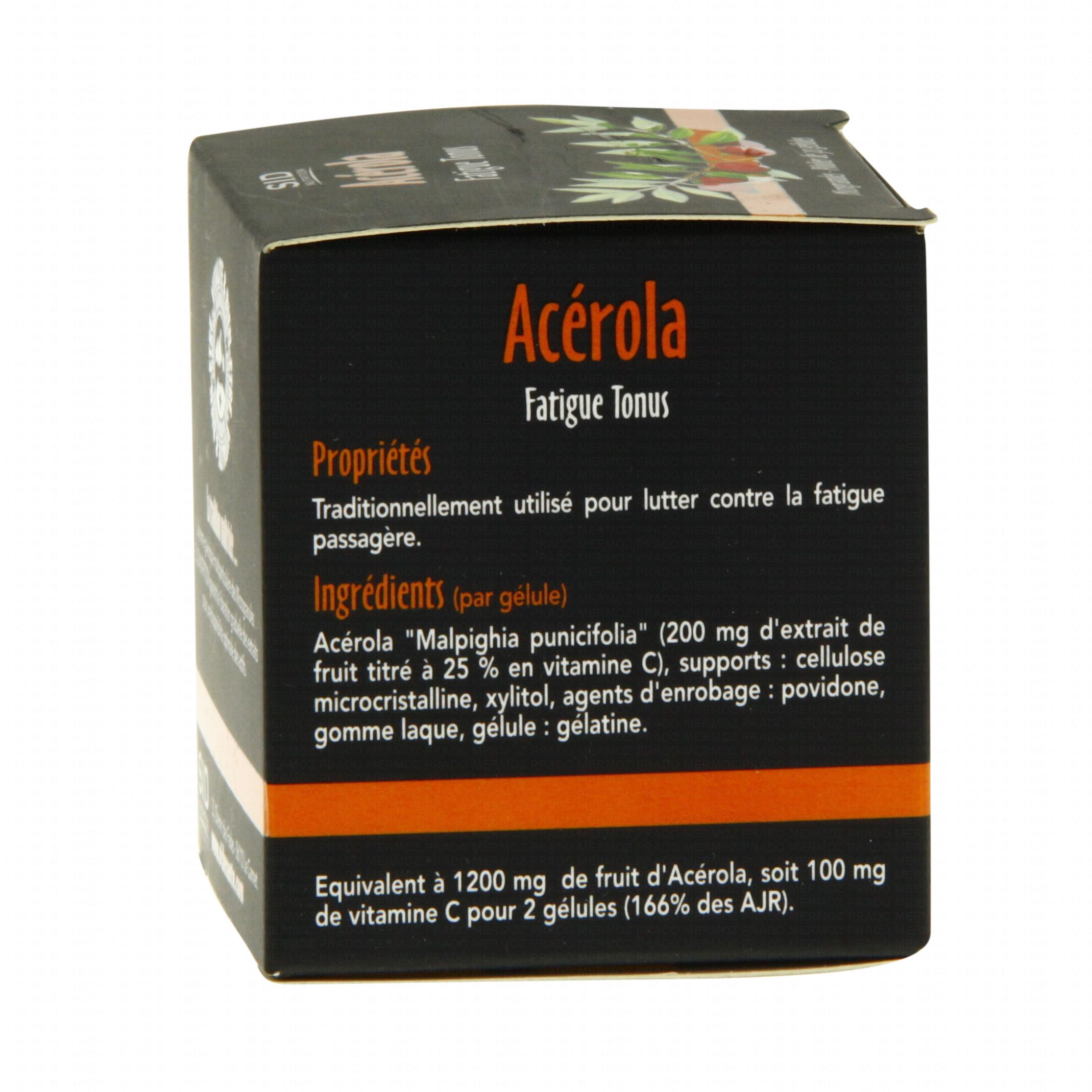 L'acérola, de la famille des malpighiacées, est une plante très connue grâce à sa teneur très élevée en vitamines C dont on utilise le fruit pour lutter contre la fatigue passagère et quotidienne grâce entre autres aux différents minéraux, principes actifs de l'acérola. Complément alimentaire, tonus et vitalité.